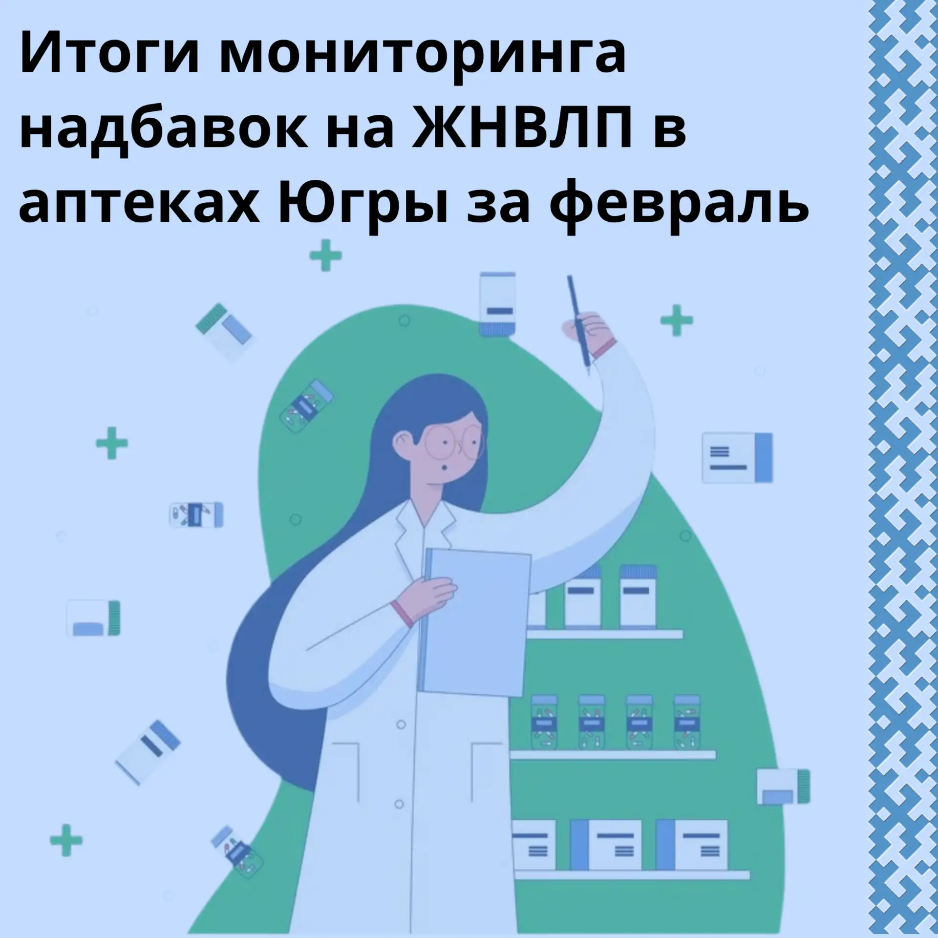РСТ Югры проведен мониторинг информации о применяемых надбавках на жизненно необходимые и важнейшие лекарственные препараты, внесенной аптечными организациями в информационную базу Росздравнадзора «Оперативный мониторинг ЛС», за февраль 2026 года.