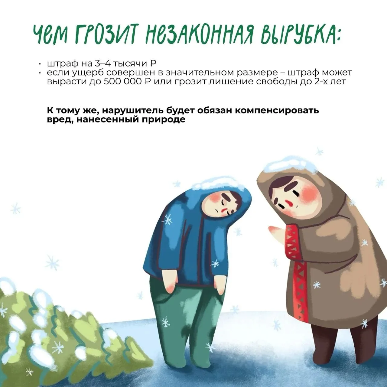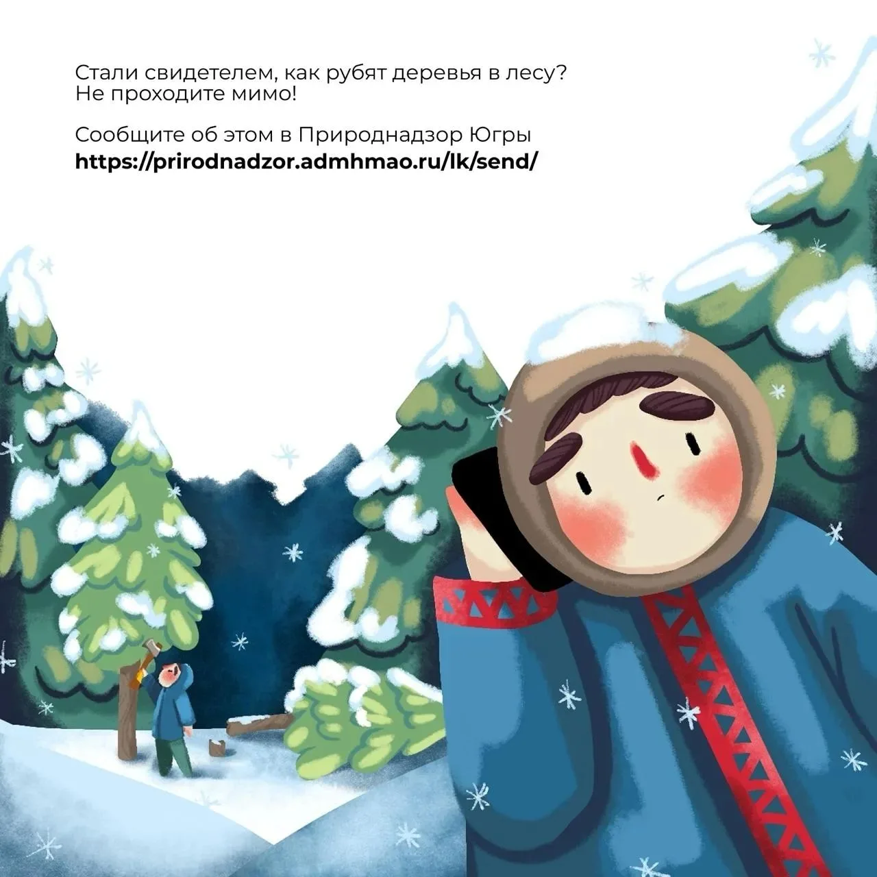 ❗Напоминаем: в целях охраны лесов Природнадзор Югры проводит профилактическую операцию «Ель». Незаконная рубка хвойных — под запретом!