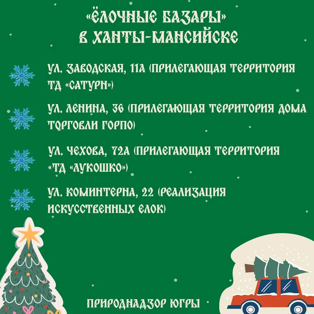 Просим Вас приобретать новогодние ели только на специализированных ёлочных базарах и разрешённых местах продажи.