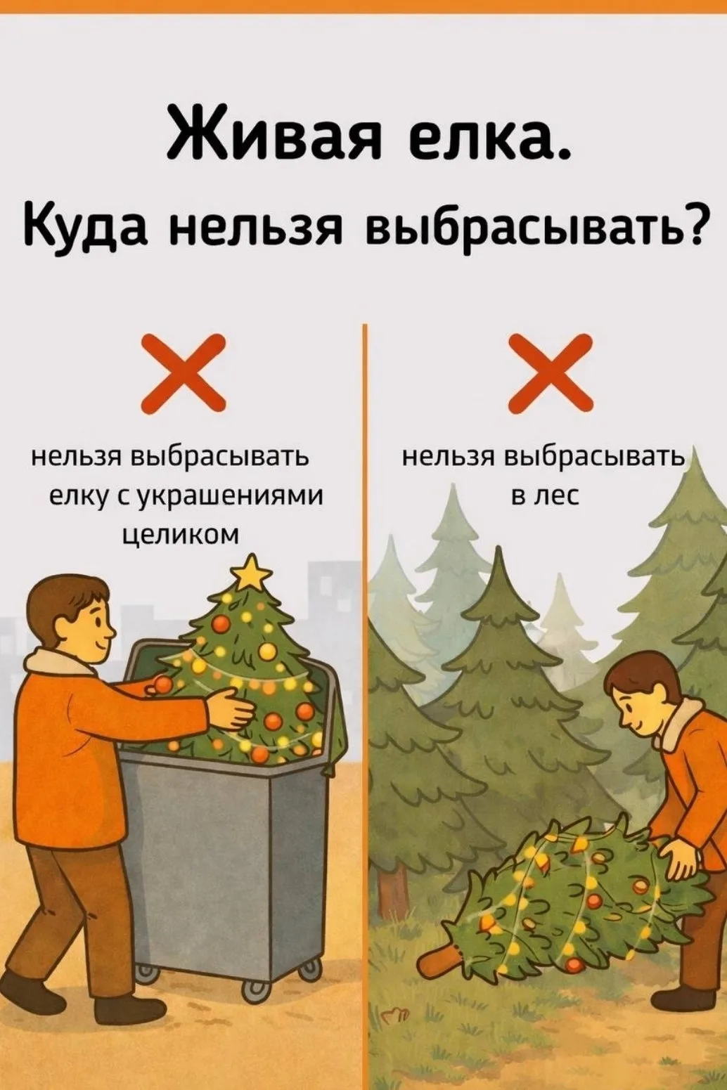 — Выбрасывать ёлку целиком в обычный мусорный контейнер