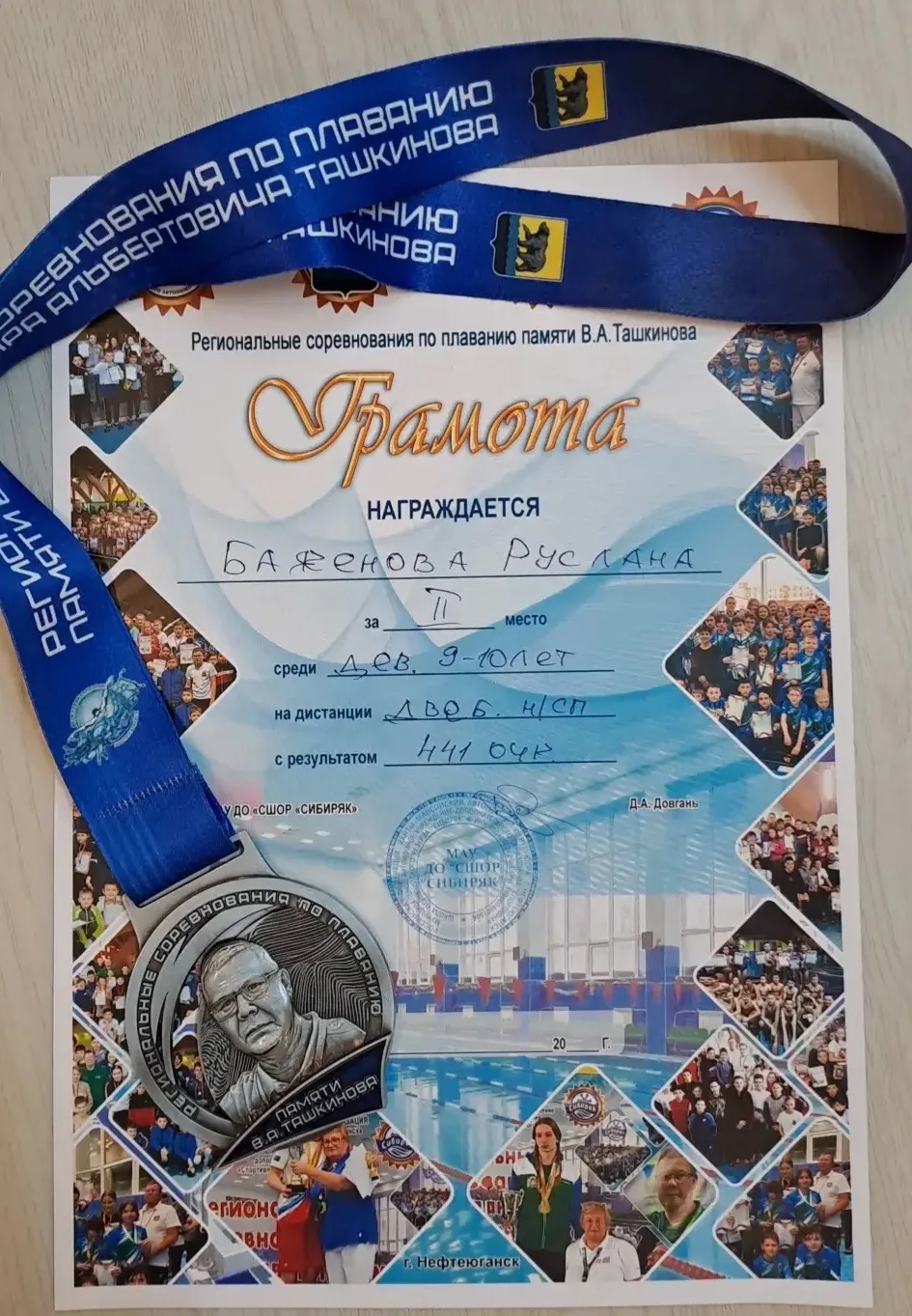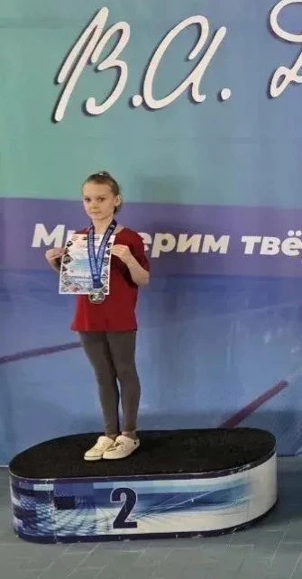 Она заняла 2 место в региональных соревнованиях по плаванию памяти В.А. Ташкинова! 🏊♀️🥈