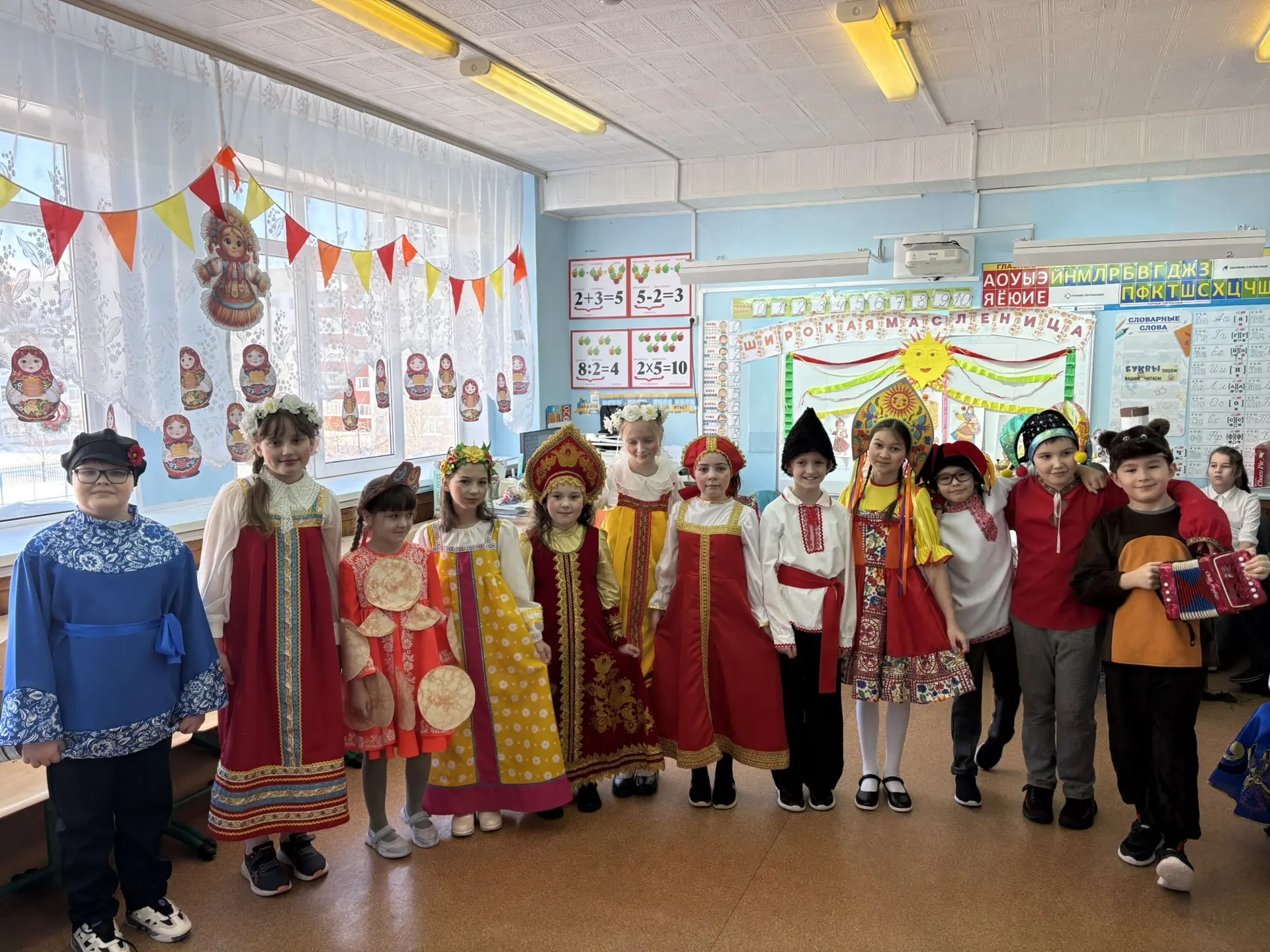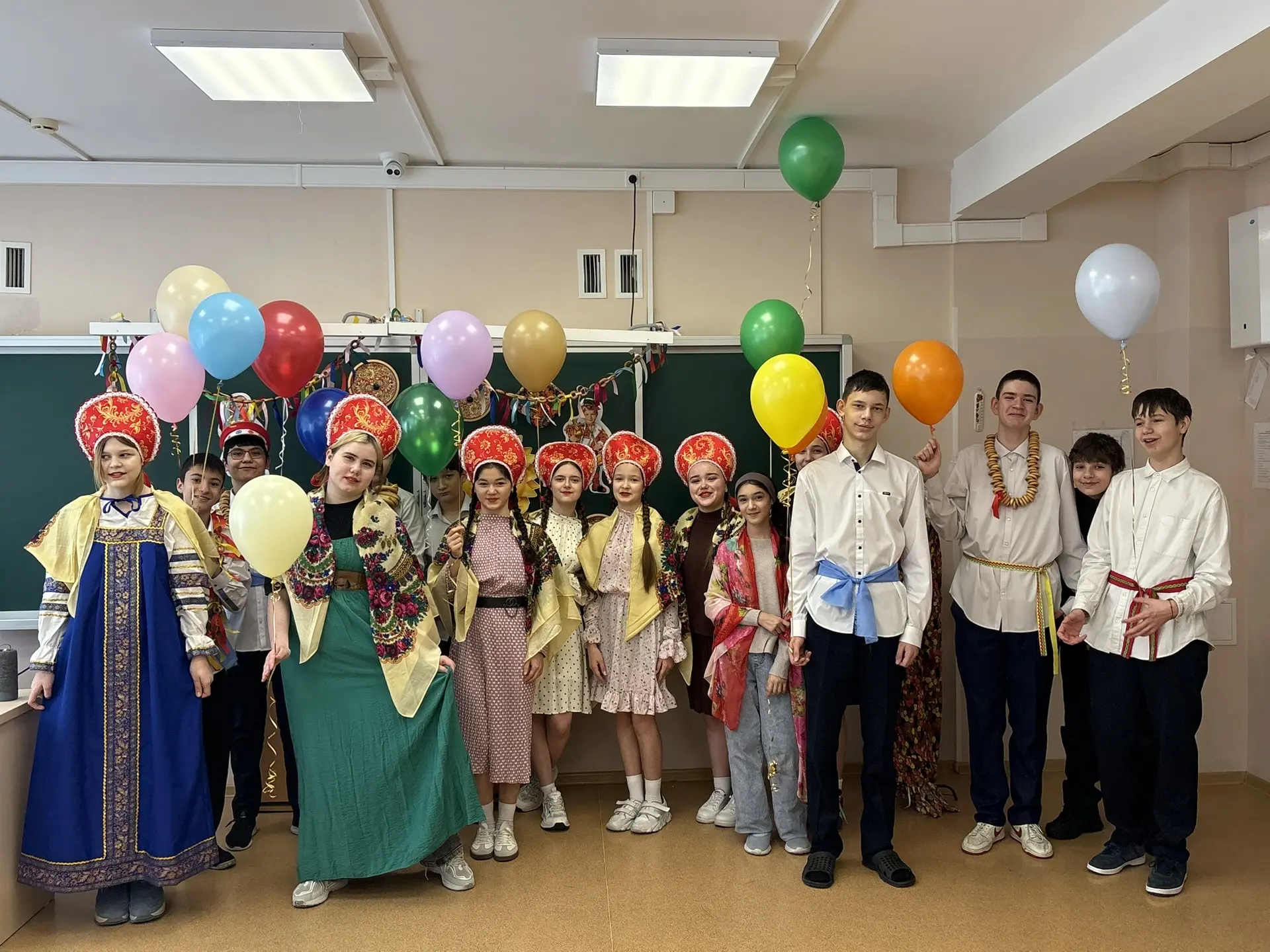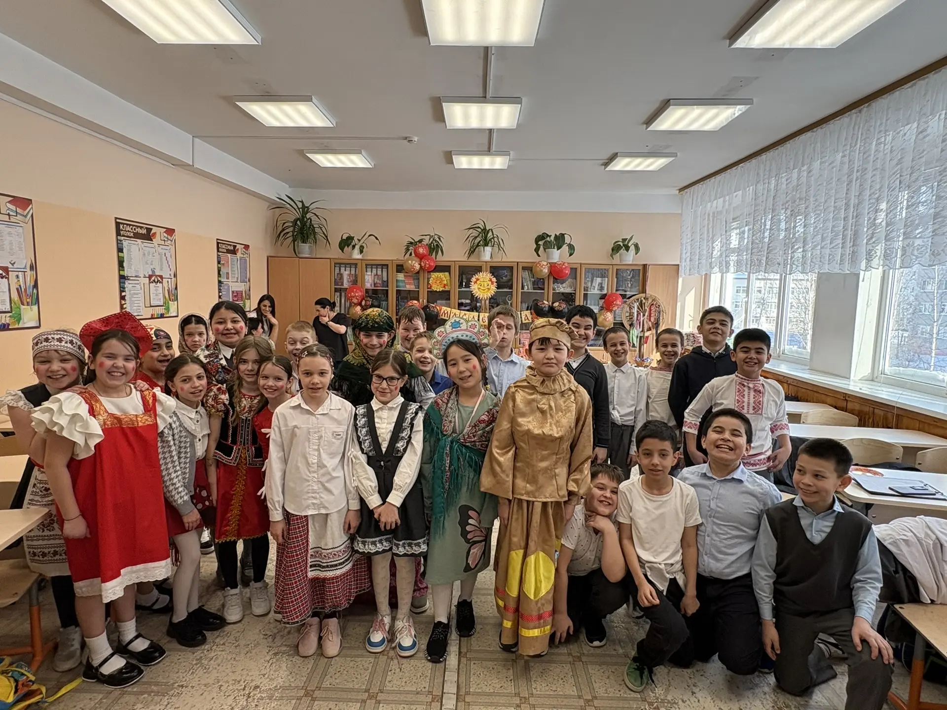 Ученики с 1 по 11 класс вдохновенно подготовили настоящие праздничные представления, погрузив всех в атмосферу народных традиций. Кабинеты преобразились: здесь и там появились солнечные лучи, самовары кипятят чай, гусли наполняют пространство мелодией, а шарики и леденцы создавали ощущение сказки.