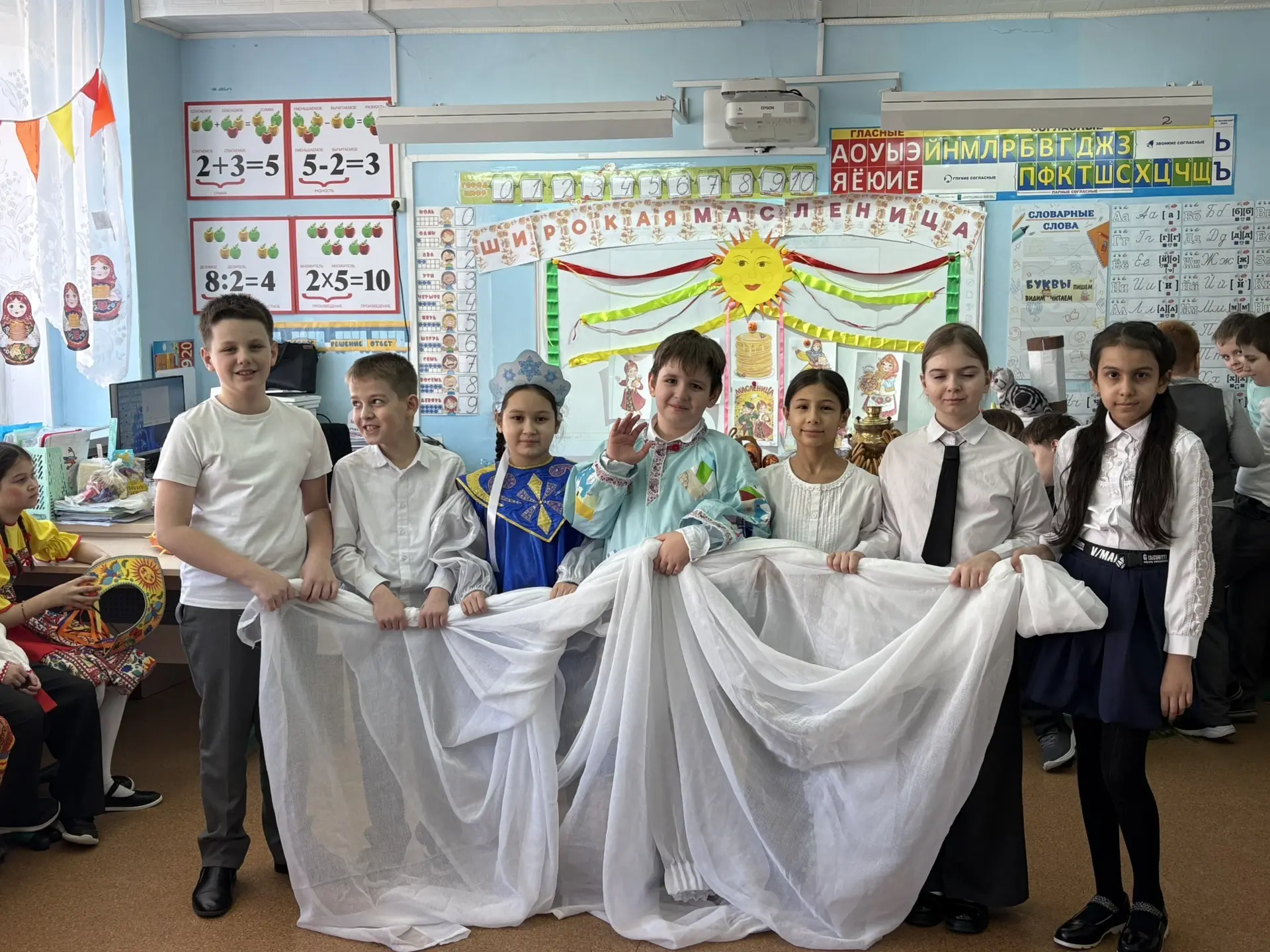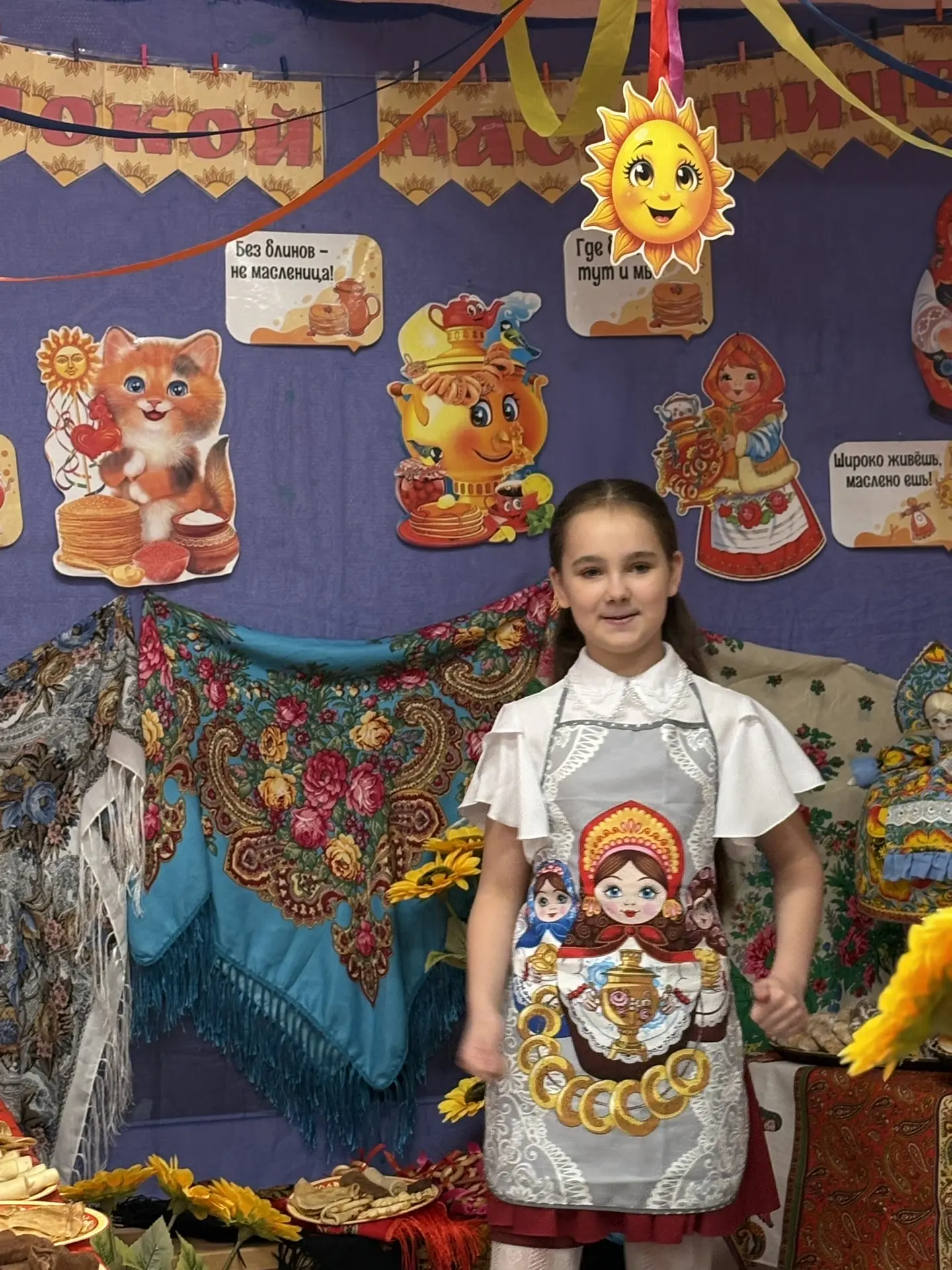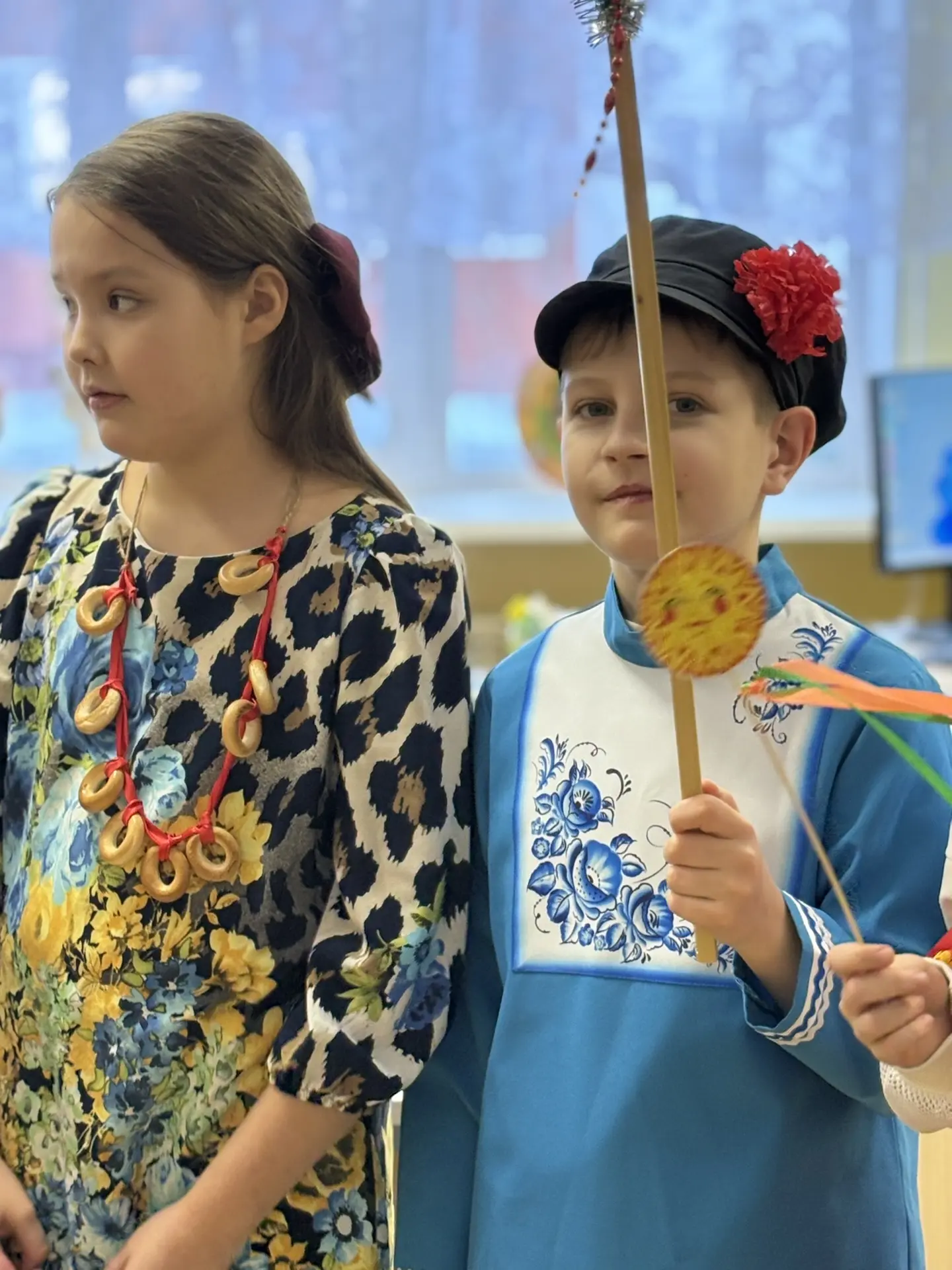 Ученики с 1 по 11 класс вдохновенно подготовили настоящие праздничные представления, погрузив всех в атмосферу народных традиций. Кабинеты преобразились: здесь и там появились солнечные лучи, самовары кипятят чай, гусли наполняют пространство мелодией, а шарики и леденцы создавали ощущение сказки.