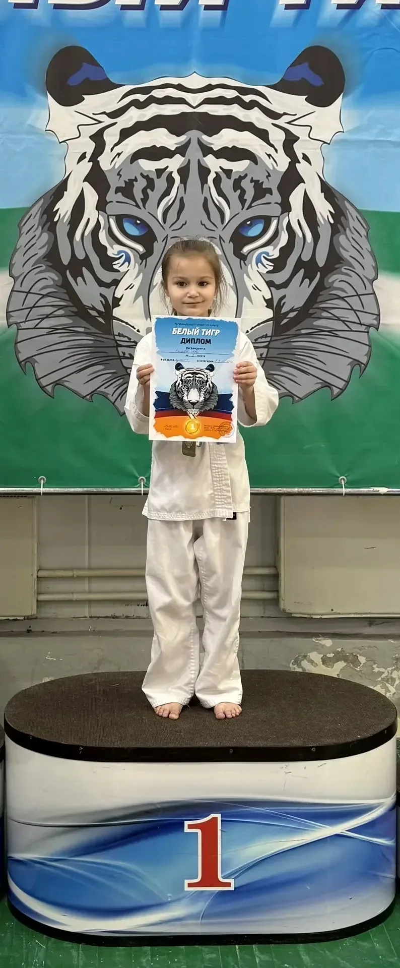 Ева заняла первое место на Региональном турнире по каратэ «Белый тигр» в возрастной категории 8-9 лет! 🥇🐯