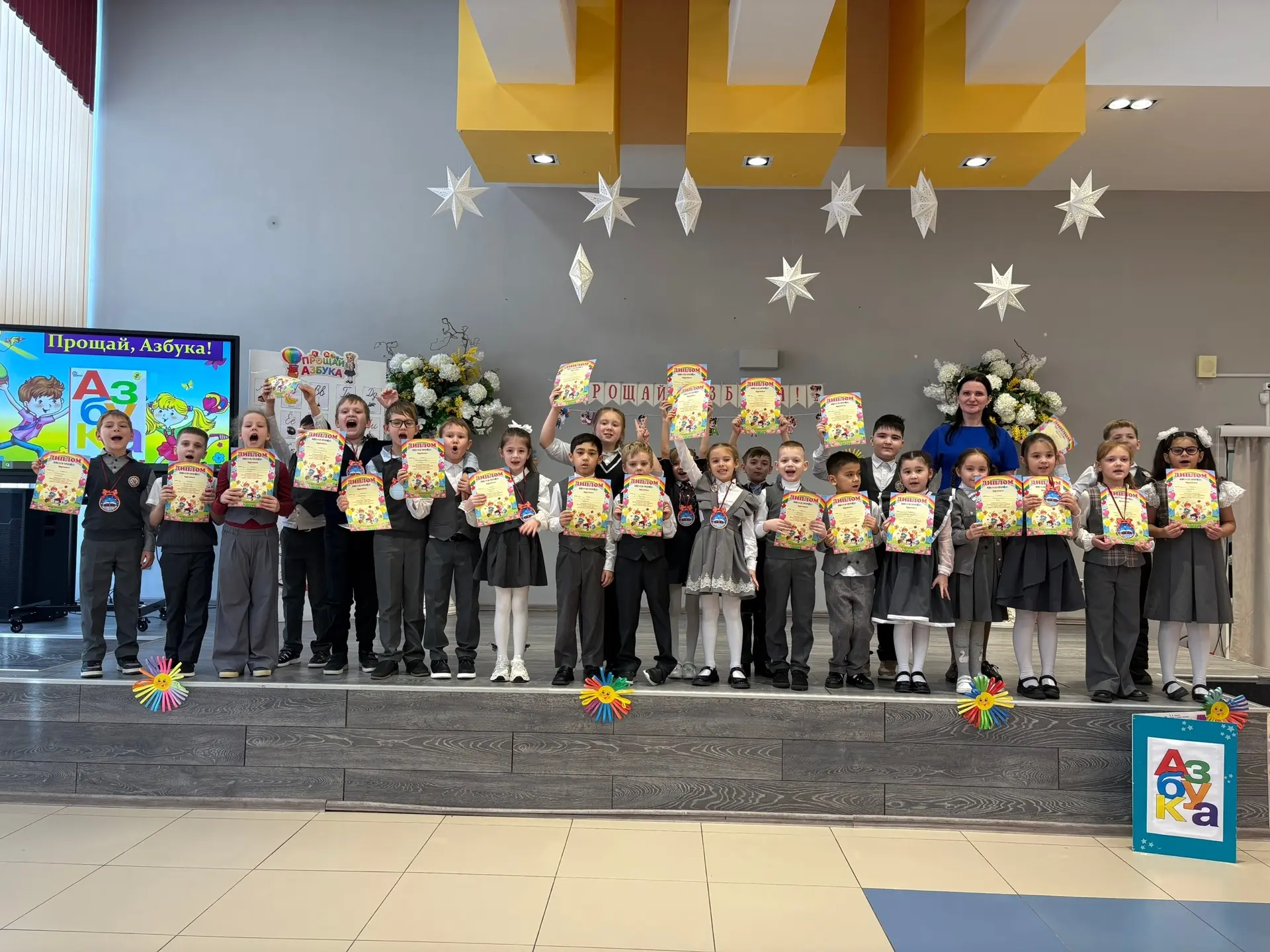 В конце праздника каждый первоклассник получил заслуженный диплом — свидетельство о завершении азбуки и начала нового пути в мире знаний! 🏆📖