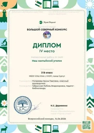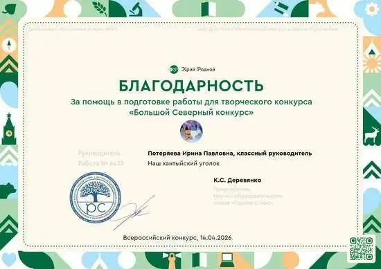 Ребята заняли 4 место во Всероссийском Большом Северном конкурсе, где соревновались почти 7000 участников со всей страны! 🌍