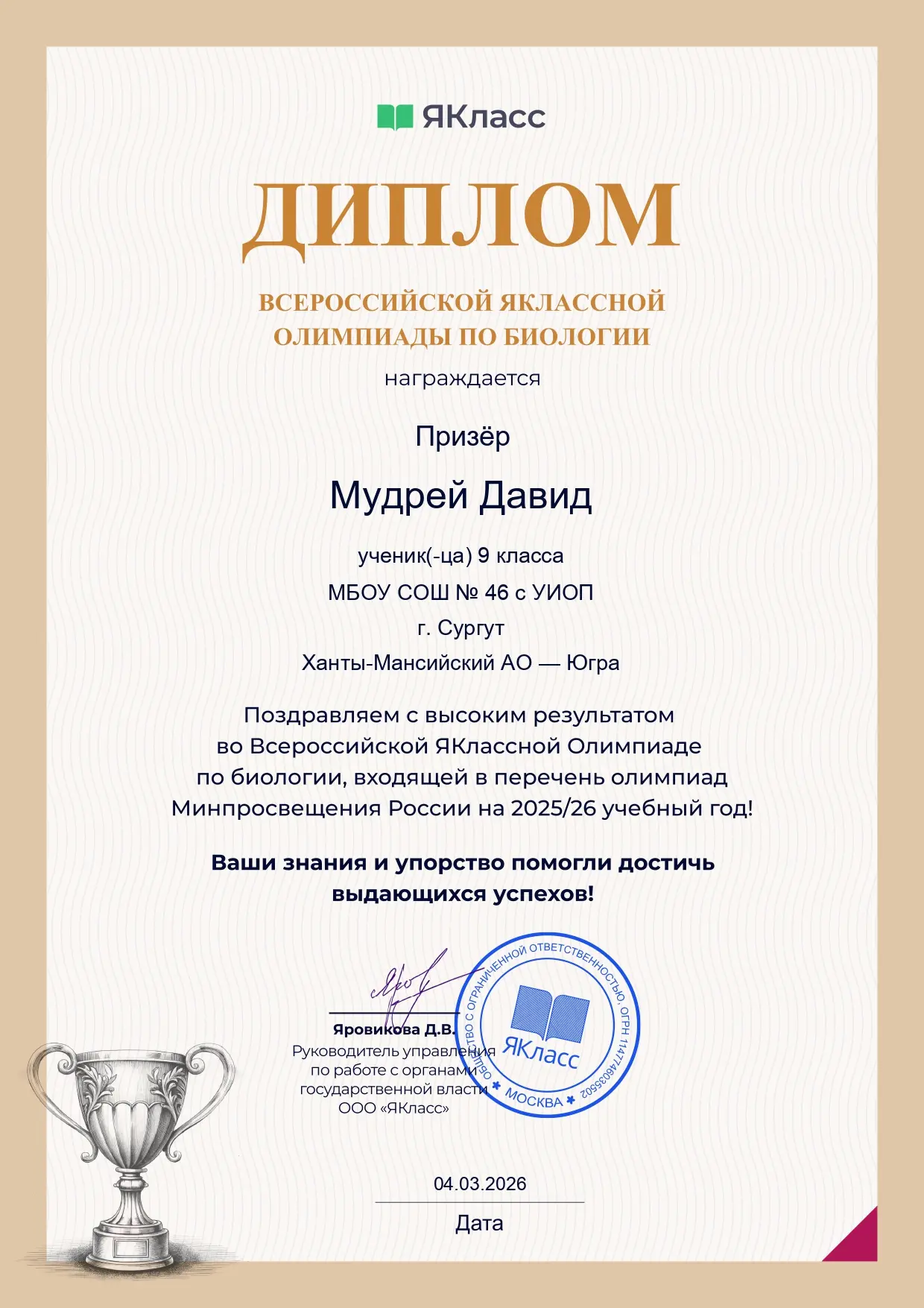 🏆 Итоги олимпиады по биологии: у нас есть призёры!