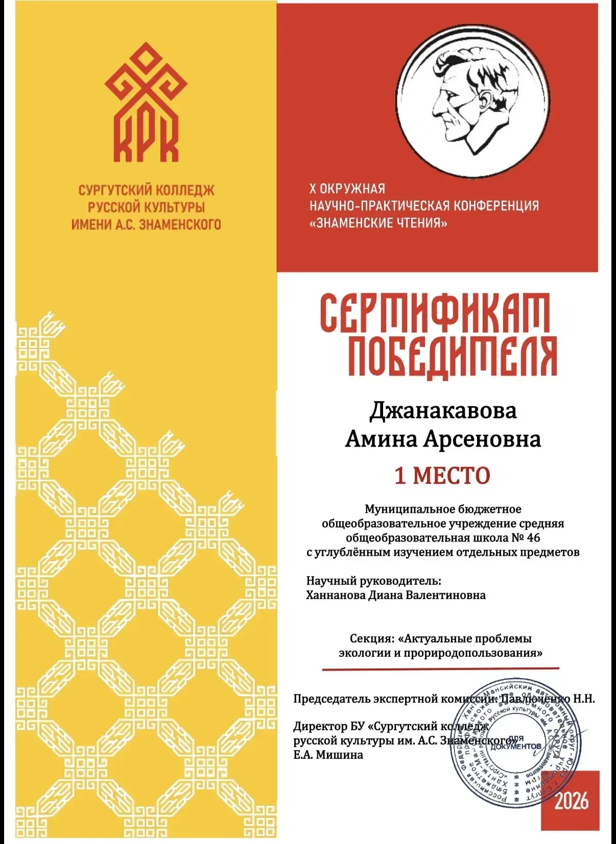 🥇 1 место — Джанакавова Амина, ученица 10Б класса!