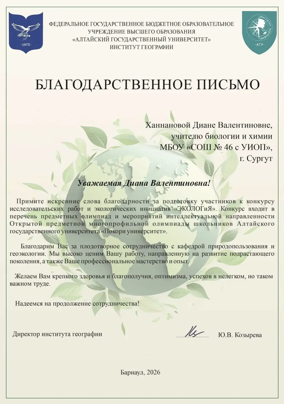 Лилия Викторовна выступила наставником для студентки Сургутского педагогического университета. Весь день она провела в Ханты-Мансийске, представляя наш город и школу на высоком уровне.