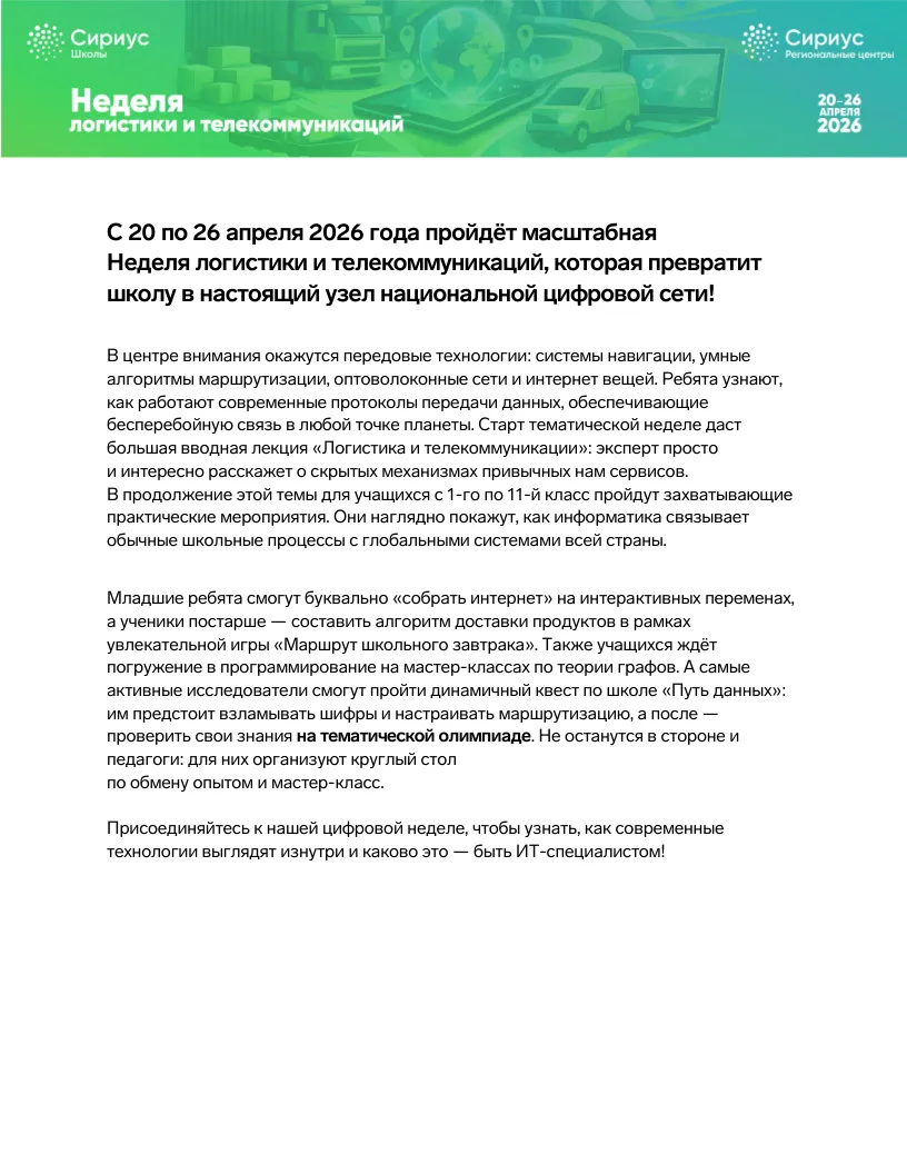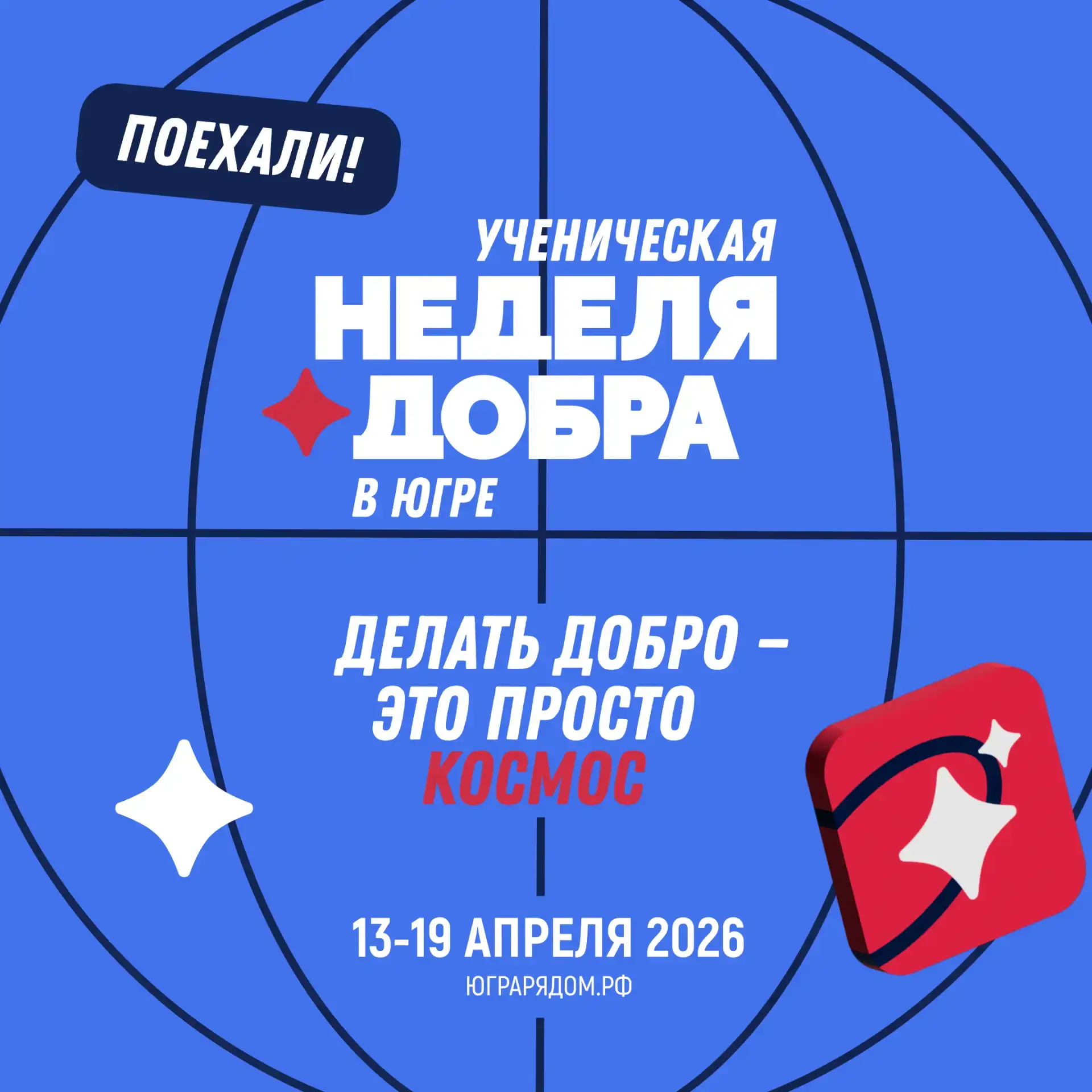 С понедельника в нашей школе стартует «Ученическая неделя добра в Югре»! 🌍💫С 13 по 19 апреля мы присоединяемся к региональному проекту, который объединяет школьников, педагогов и родителей в добрых делах. Каждый день — новая возможность сделать мир вокруг немного светлее!