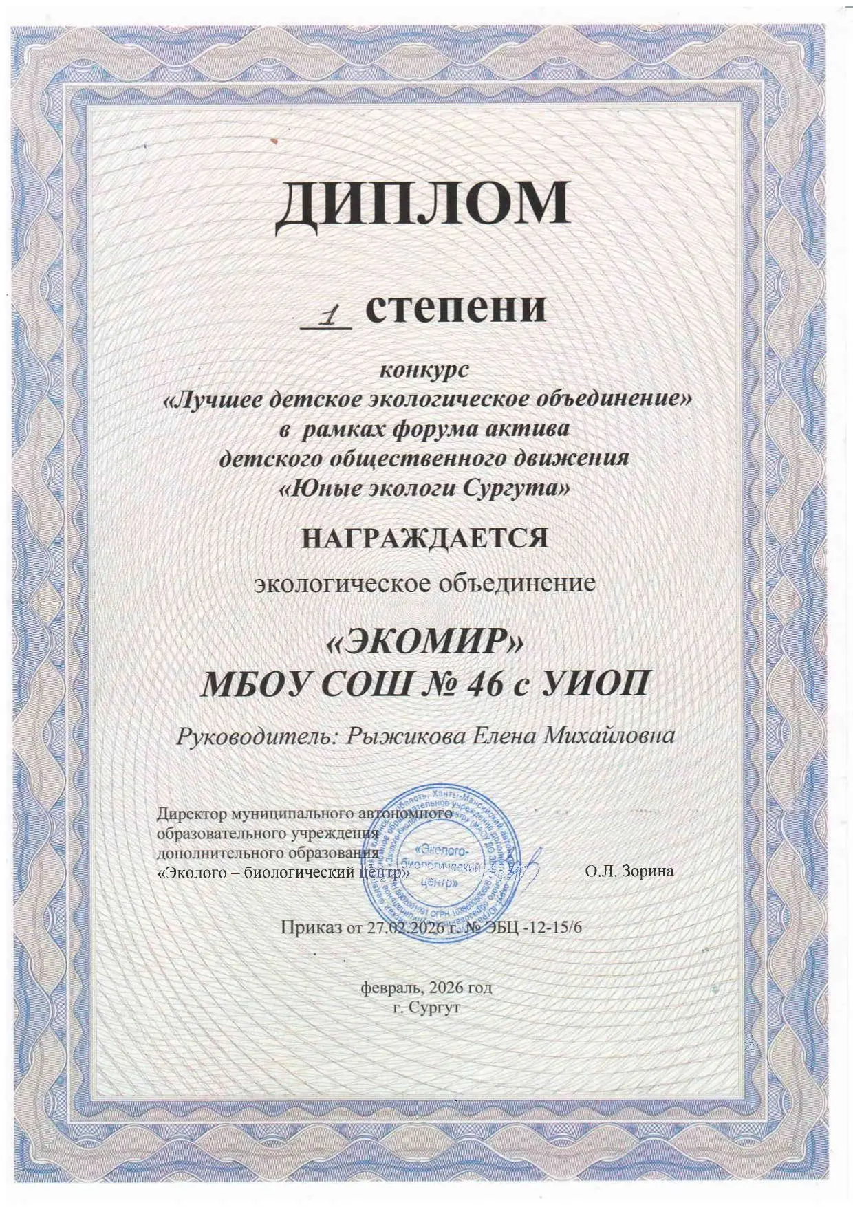Ура! Команда «ЭКОМИР» (учащиеся 6 класса: Максимилиан Гильмуллин, Матвей Мусатов, Елизавета Рахманова и Матвей Хижняк) одержала победу на форуме «Юные экологи Сургута»! 🌿Этот успех стал возможен благодаря таланту ребят и профессионализму их наставника — учителя биологии Елены Михайловны Рыжиковой.