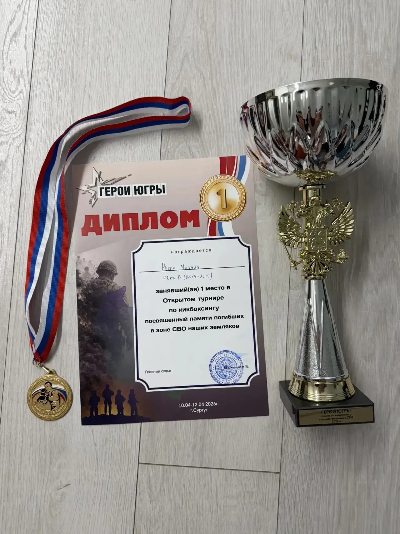 В категории «Короткое оружие» (среди 40 участников!) Евгений занял 2 место — это невероятный результат в такой плотной конкуренции. Но главный триумф ждал впереди: в категории юниоры 15–17 лет, вид «Дуйлянь» (парные показательные выступления), Евгений стал АБСОЛЮТНЫМ ЧЕМПИОНОМ — 1 МЕСТО! 🥇🔥