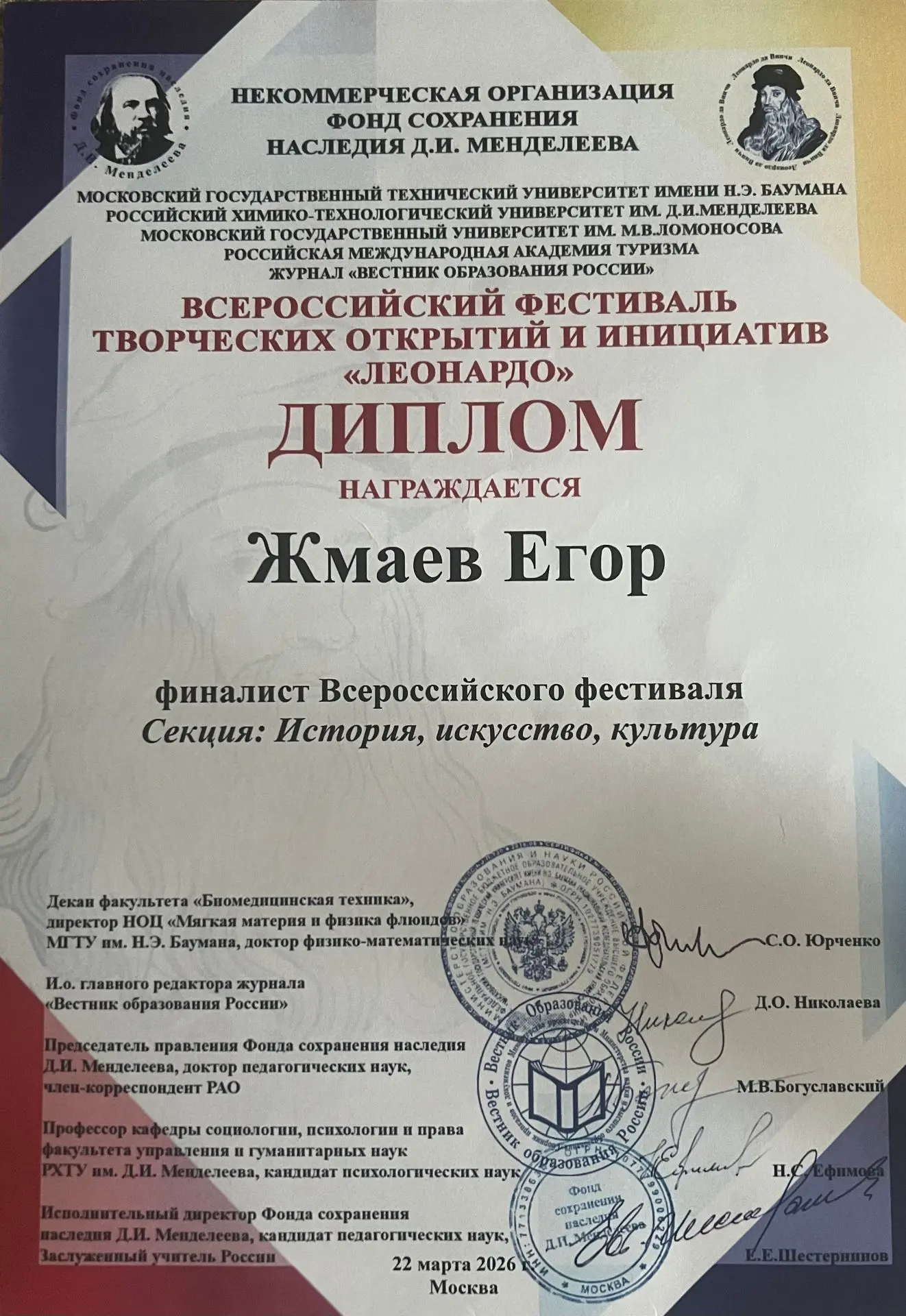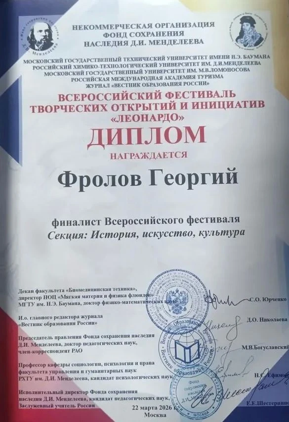 Лена стала призером в секции «Вклад российских, советских деятелей, соотечественников в развитие мировой культуры, искусства».