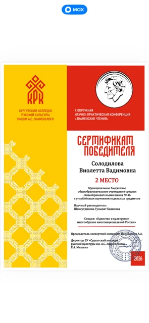 🏆 ГОРДОСТЬ ШКОЛЫ: ПОБЕДА НА «ЗНАМЕНСКИХ ЧТЕНИЯХ»!