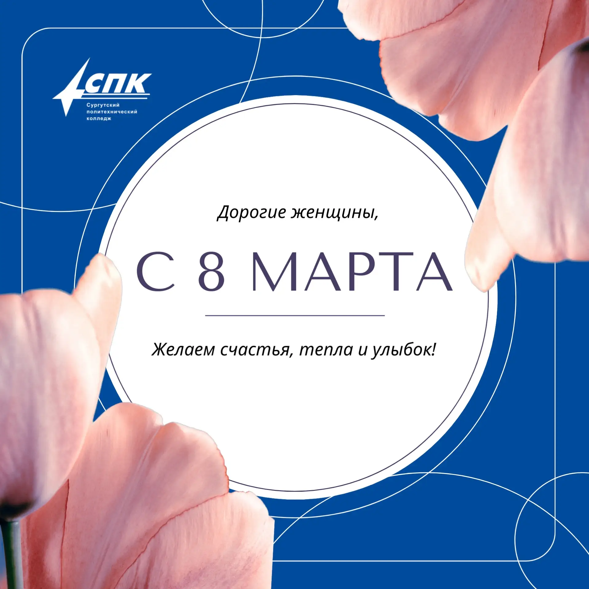 От всей души поздравляем прекрасную половину Сургутского политехнического колледжа с Международным женским днём! Именно вы создаёте ту особенную атмосферу, в которой хочется творить и учиться . Вы сочетаете в себе невероятную мудрость, терпение, хрупкость и силу духа.
