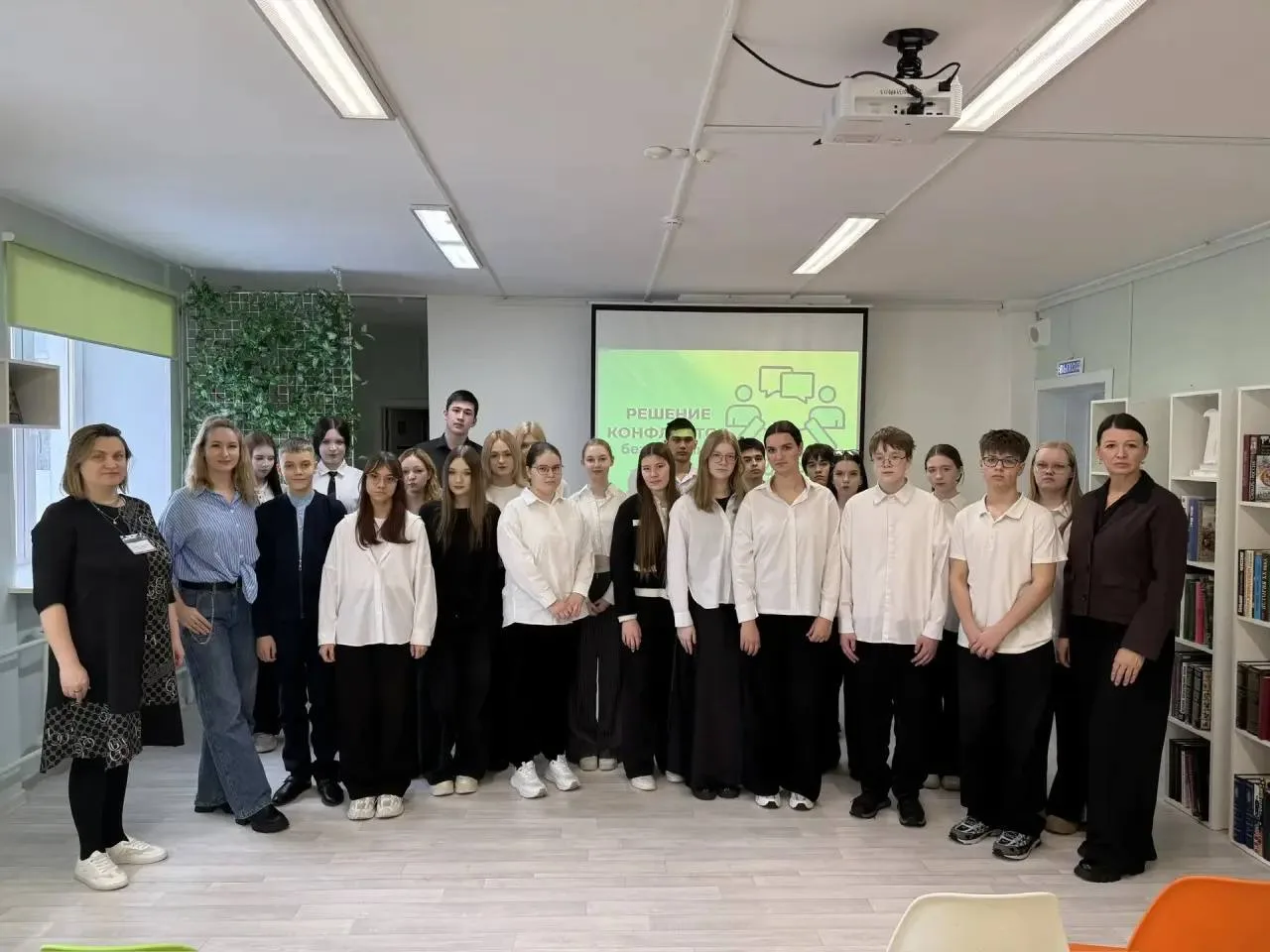 📚 Обучающиеся 10А класса совместно с классным руководителем Репьевой Еленой Александровной посетили городскую библиотеку №5, где приняли участие в интереснейшем мероприятии под названием «Разрешение конфликтов без насилия».