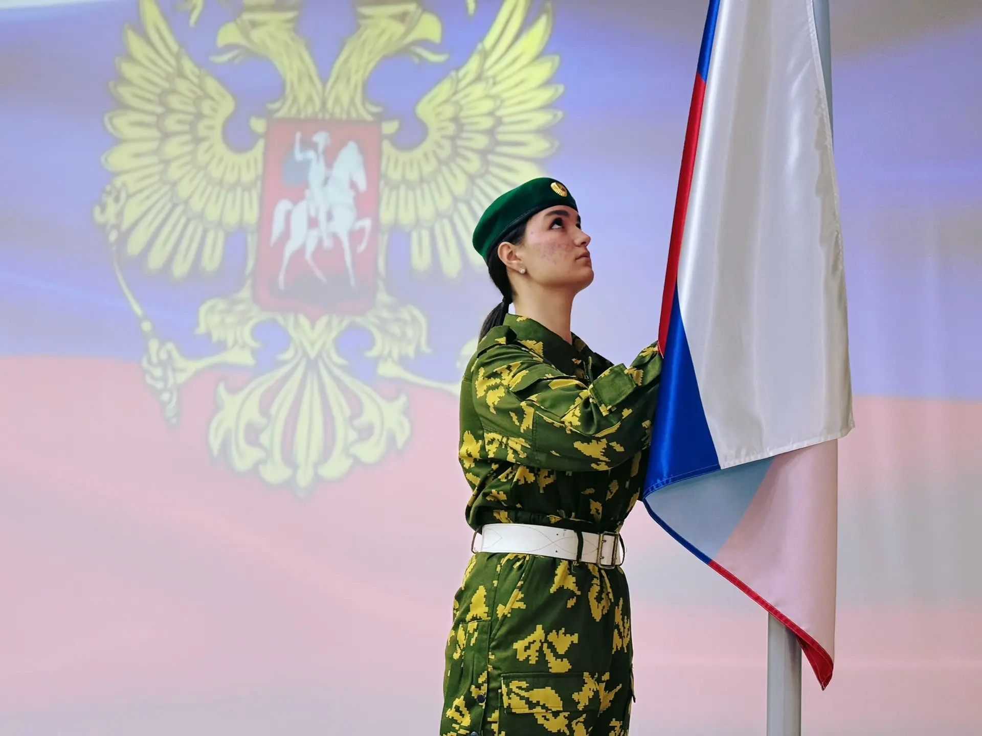 Право поднять флаг было предоставлено ученице 10-А класса, Афанасьевой Ксении. Ксения является обладательницей Гран-при в номинации "Театральное искусство", членом отряда "Юнармия", активным волонтером и лауреатом премии Губернатора Югры.