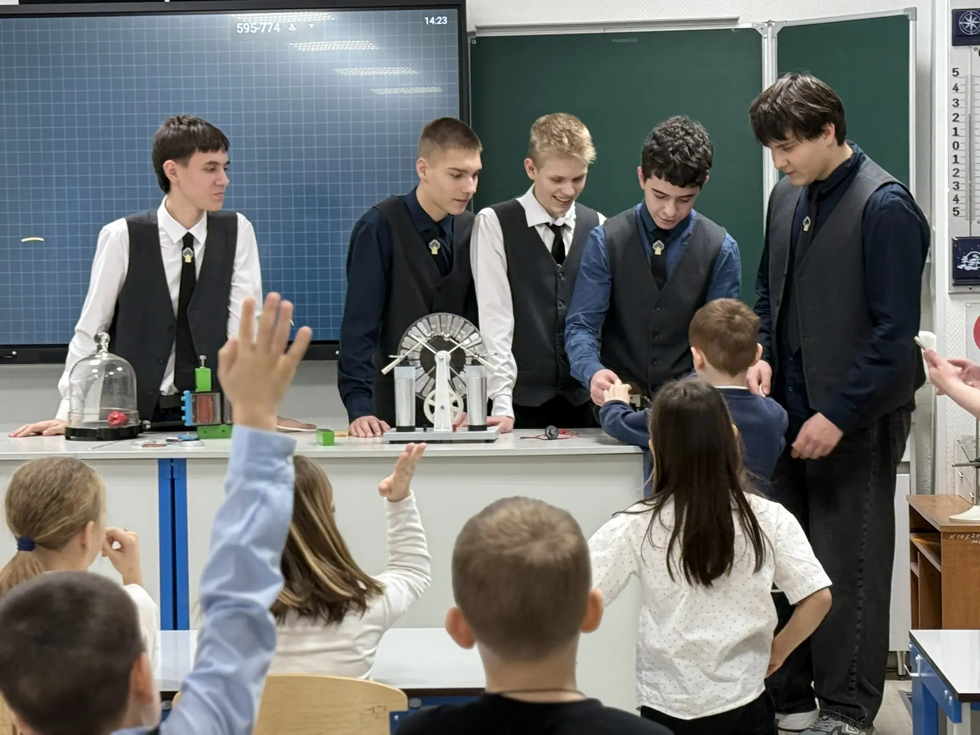 🔬 Для начальных классов старшеклассники провели научный марафон: зрелищные опыты по химии и физике, изучение анатомии на моделях и путешествие по глобусу.