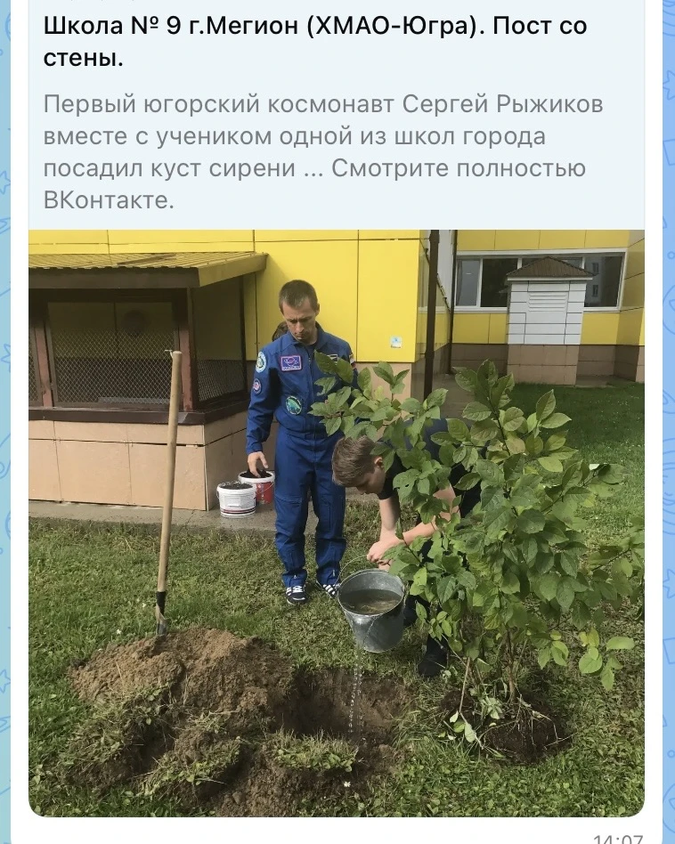 2017 год: В школе в гостях космонавт С. Рыжиков. Им посаженная сирень растет. 2026 год: Ю.А. Гагарин тоже с нами/ у нас. 13 апреля более торжественно!