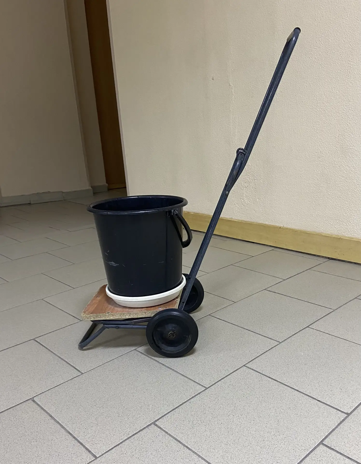 Стало неловко-стыдно за условия работы. Уборщица полов сама изготовила тележку для перевозки тяжелого ведра. Ей респект! Себе «двойку». Буду исправляться. М.И.