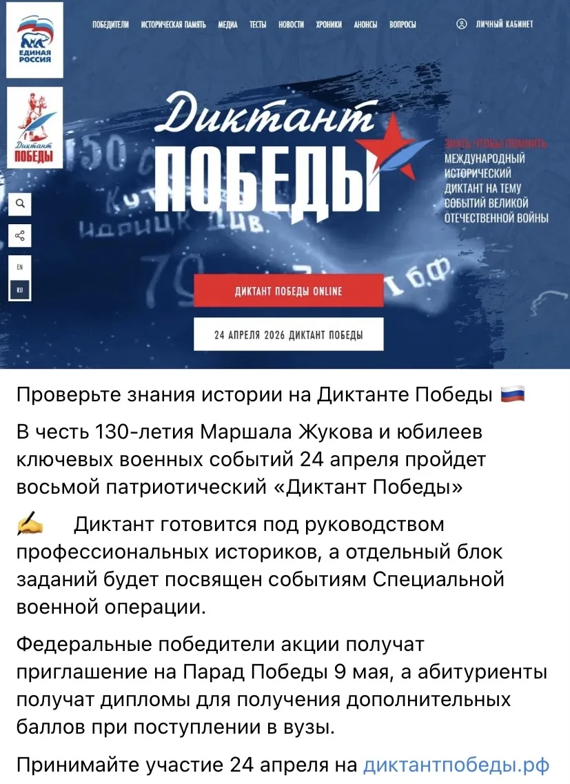 24 апреля непосредственно в нашей школе состоится Диктант Победы! Принимаем участие! Особенно одиннадцатиклассники! Ибо при поступлении вас об этом спросят. 🦉