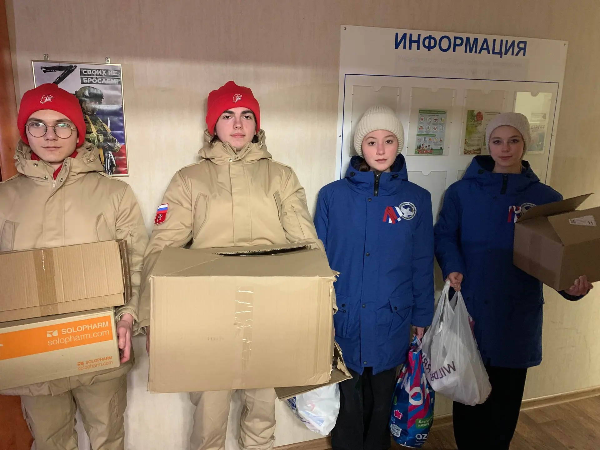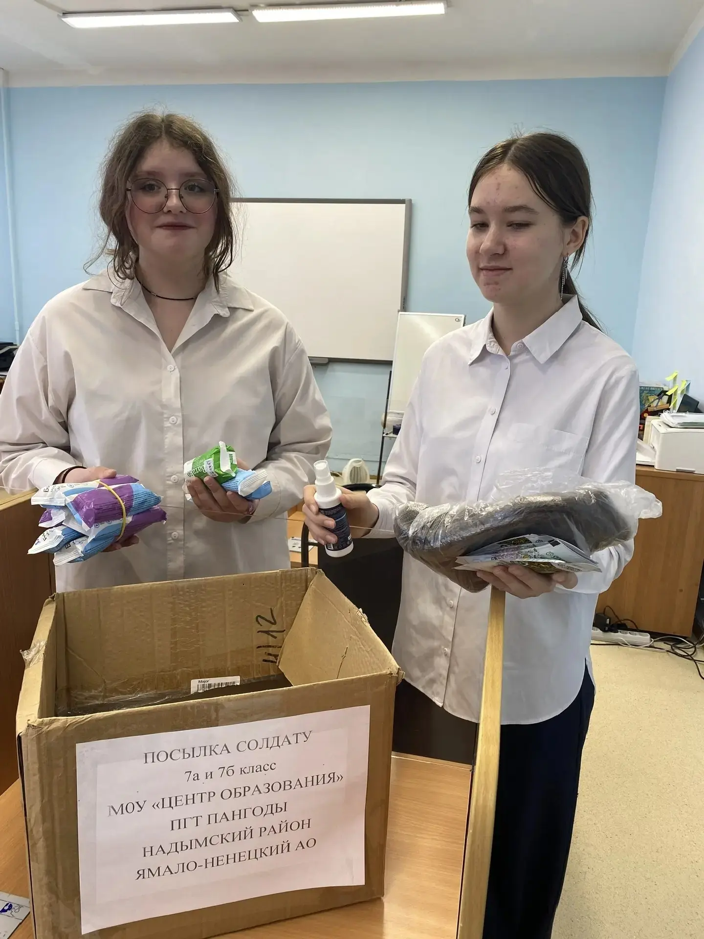 Волонтеры Победы и юнармейцы отряда «Витязи» рассортировали посылки, часть которых передали в пангодинский штаб «Тихий фронт», а часть направили через отделение «Почта России» в военные части.