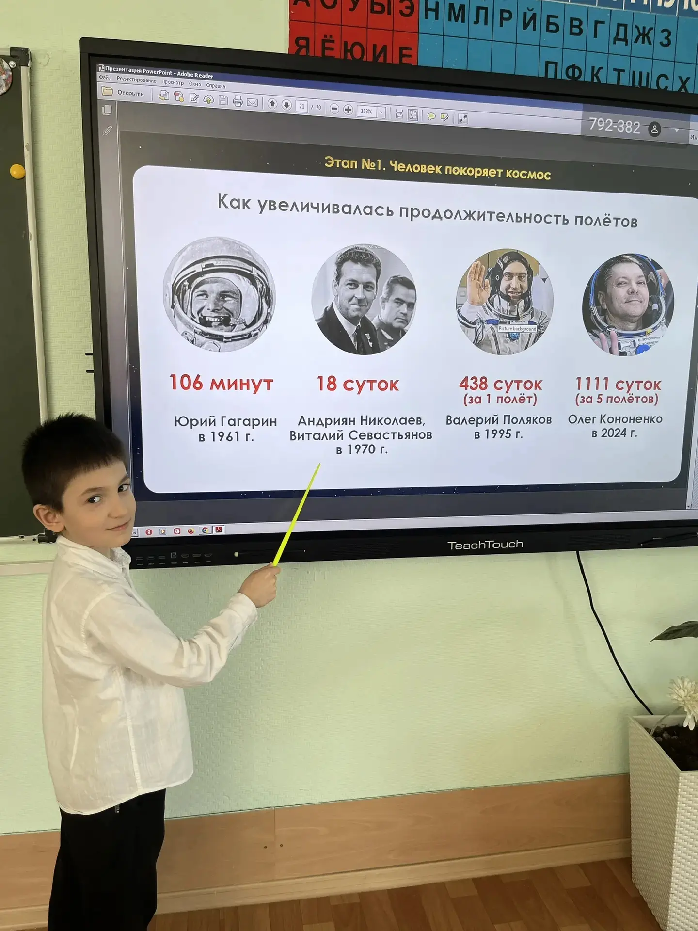 ✨ Сначала перед Орлятами ожила эпоха великого прорыва: рассказ о Юрии Гагарине, первом корабле «Восток», семье космонавта, а также о всенародной радости, охватившей страну 12 апреля 1961 года.️