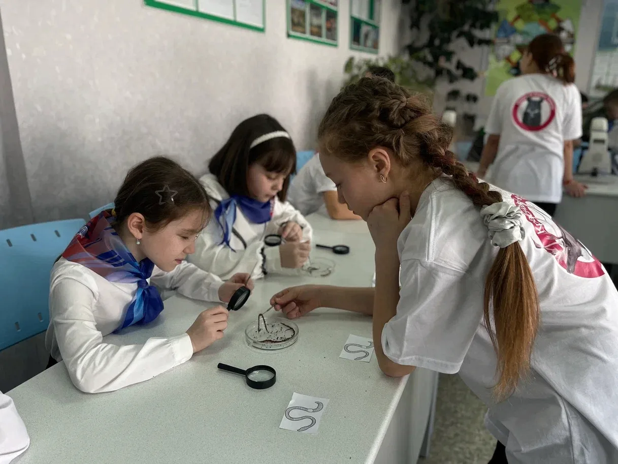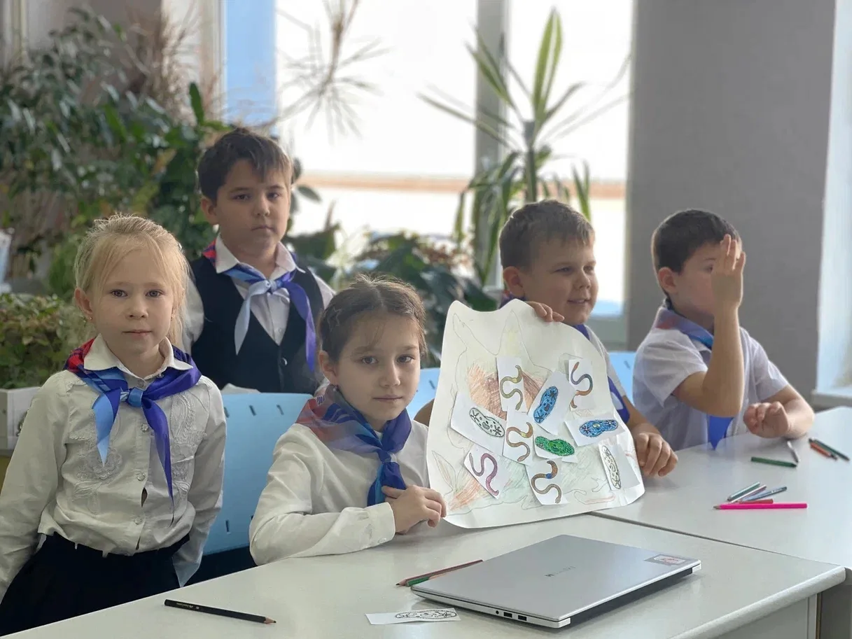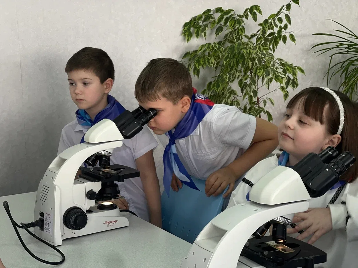 Здесь кипела настоящая работа! Юные исследователи работали с микроскопами. Строение клеток ожило на стеклышках, вызвав неподдельный восторг.