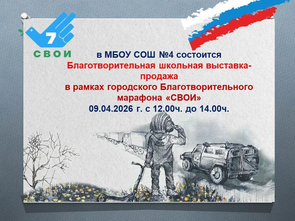 🔥9 апреля в школе №4 прошла школьная выставка-продажа сувениров, выпечки и различных изделий, изготовленных учащимися, их родителями и сотрудниками школы, в рамках городского Благотворительного марафона «СВОИ» с целью сбора средств для оказания помощи участникам СВО и их семьям.