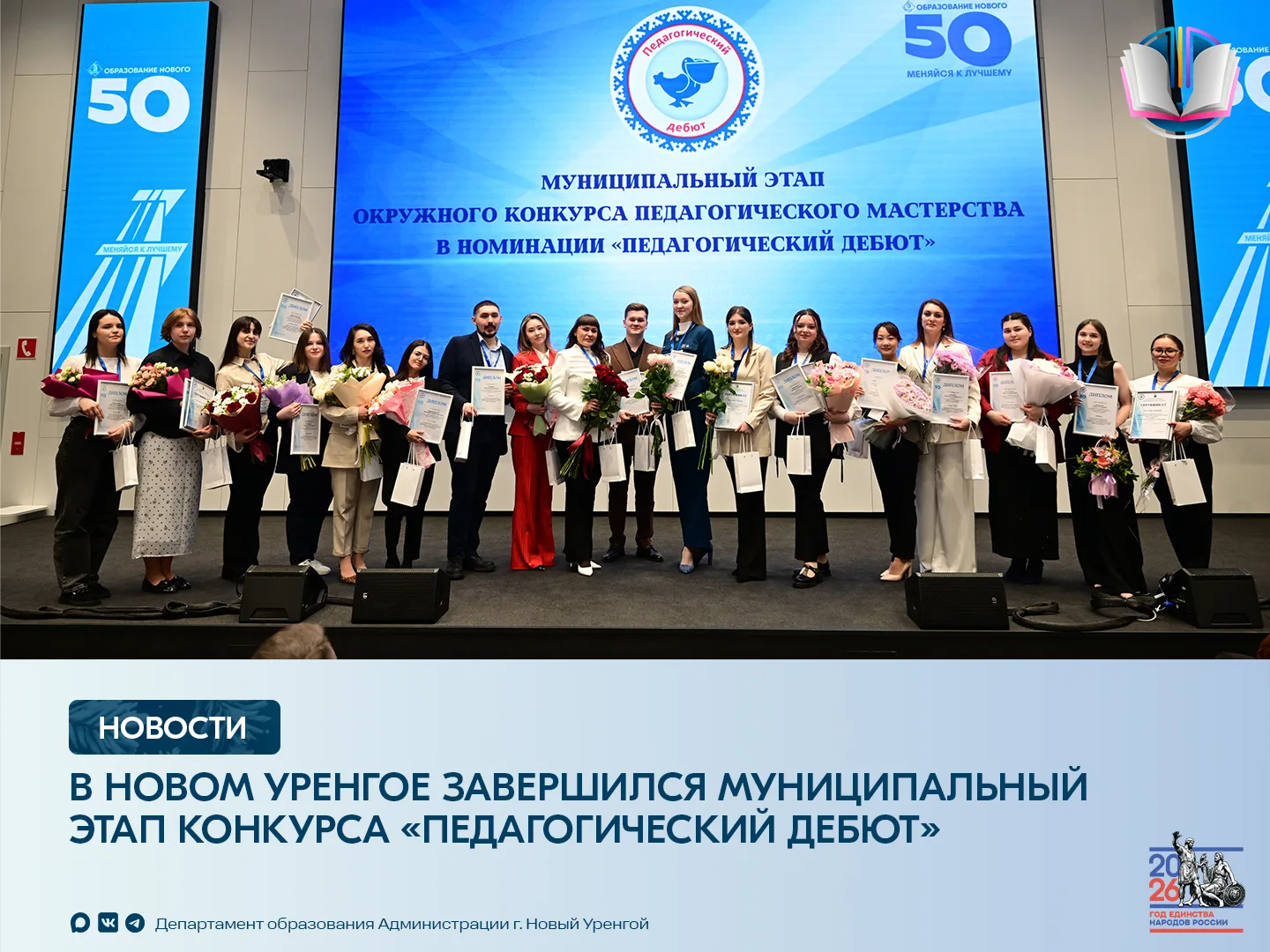 ❤Департамент образования города Нового Уренгоя выражает искреннюю признательность всем участникам конкурса за смелость, творческий поиск и преданность профессии. Особые поздравления — победителям! Ваш успех — это вклад в будущее нашего города, в образование и воспитание новых поколений. Пусть «Педагогический дебют» станет лишь первой яркой страницей в вашей профессиональной биографии!