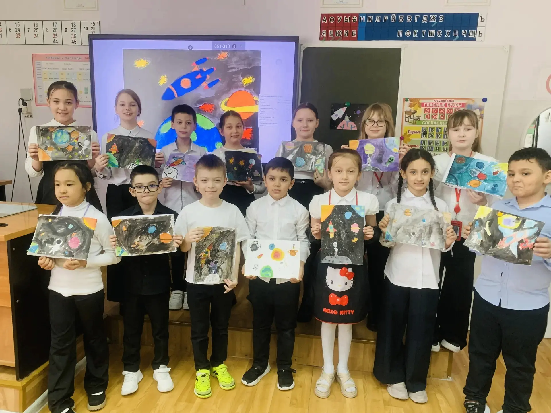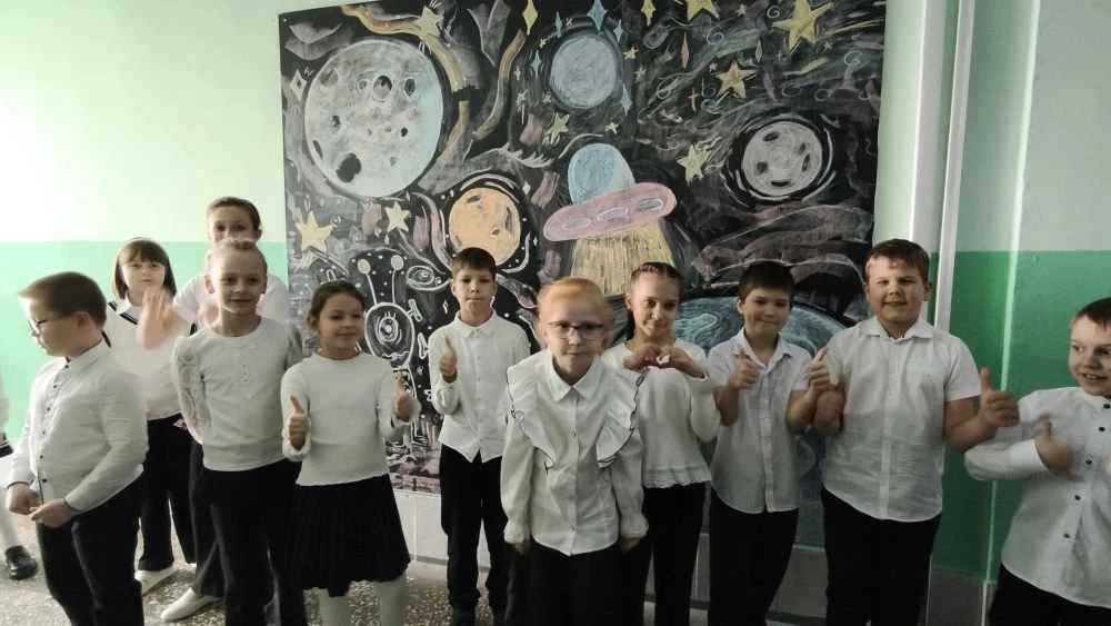 🎨Творческая вселенная выплеснулась в холлы: в школе развернулась выставка рисунков. Планеты, ракеты, далёкие галактики — каждая работа сияла по-своему.