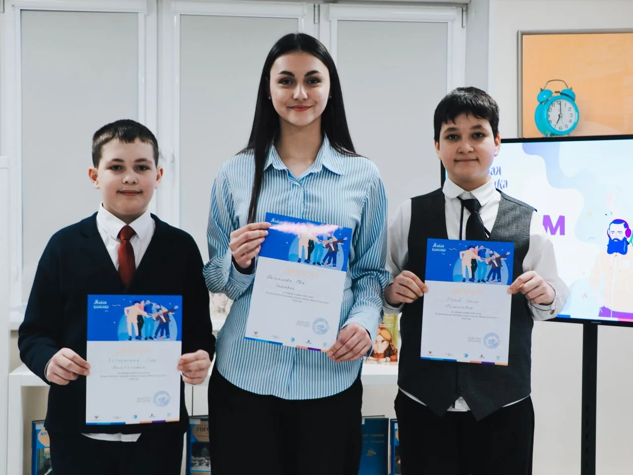 На городском этапе всероссийского конкурса юных чтецов «Живая классика» нашу школу представили Михаил Атаманов, Сумайя Дукаева и Глеб Корчинский.