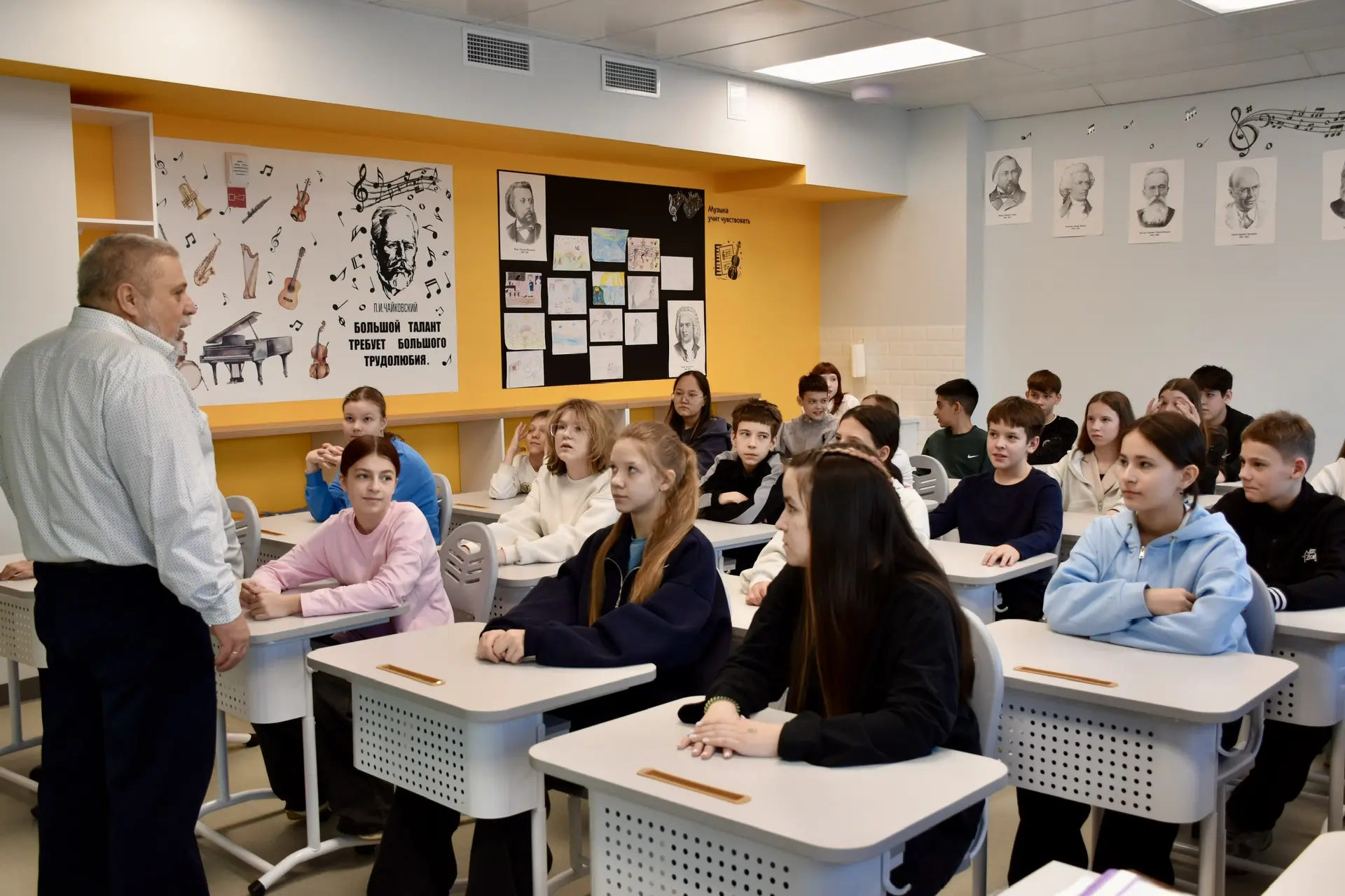 Царила атмосфера звуков. Ребята слушали музыку и угадывали, откуда к нам пришел язык музыки.
