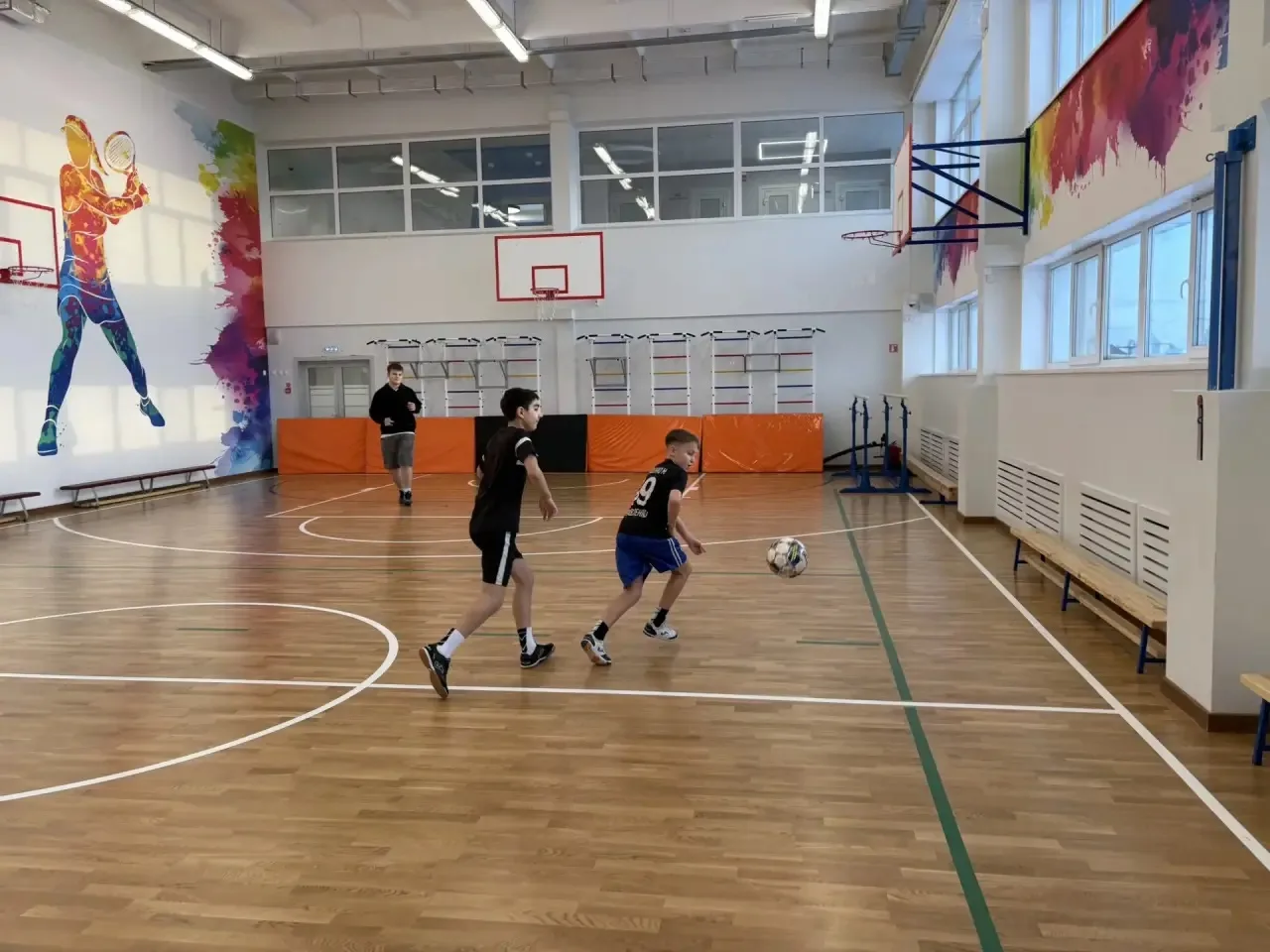 Пока все доедают салаты, наши спортсмены уже в строю! Сегодня в спортивном зале школы прошла праздничная тренировка по мини-футболу. 🏃♂️⚽️