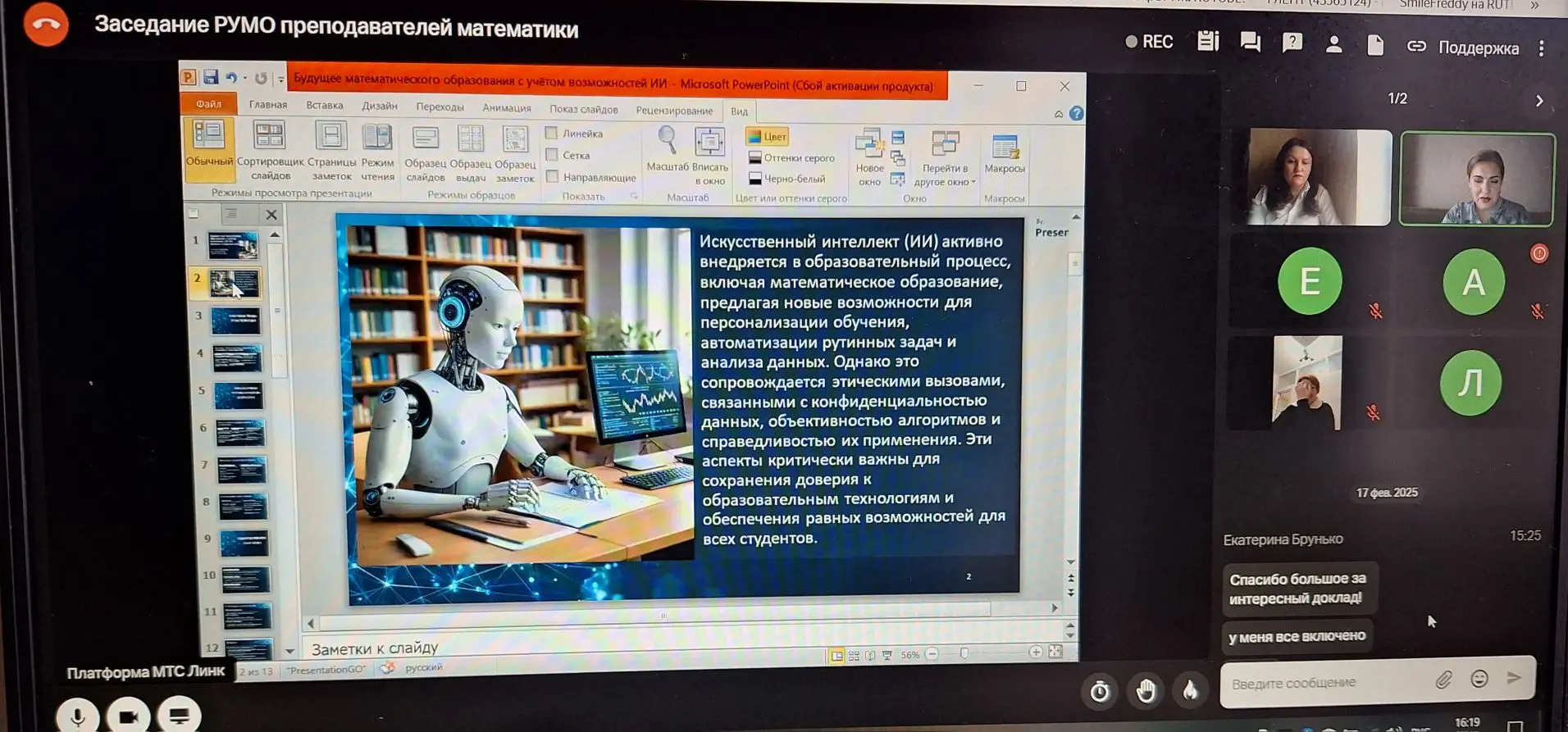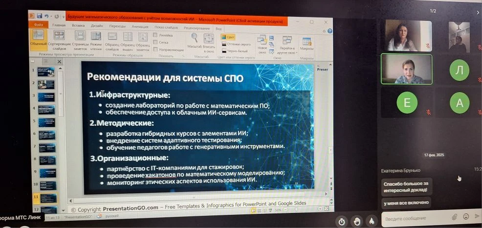 16.02.2026 на базе ГБПОУ «Мелитопольский многопрофильный колледж» прошла видеоконференцсвязь регионального учебно-методического объединения преподавателей математики на тему: «Искусственный интеллект в математическом образовании».