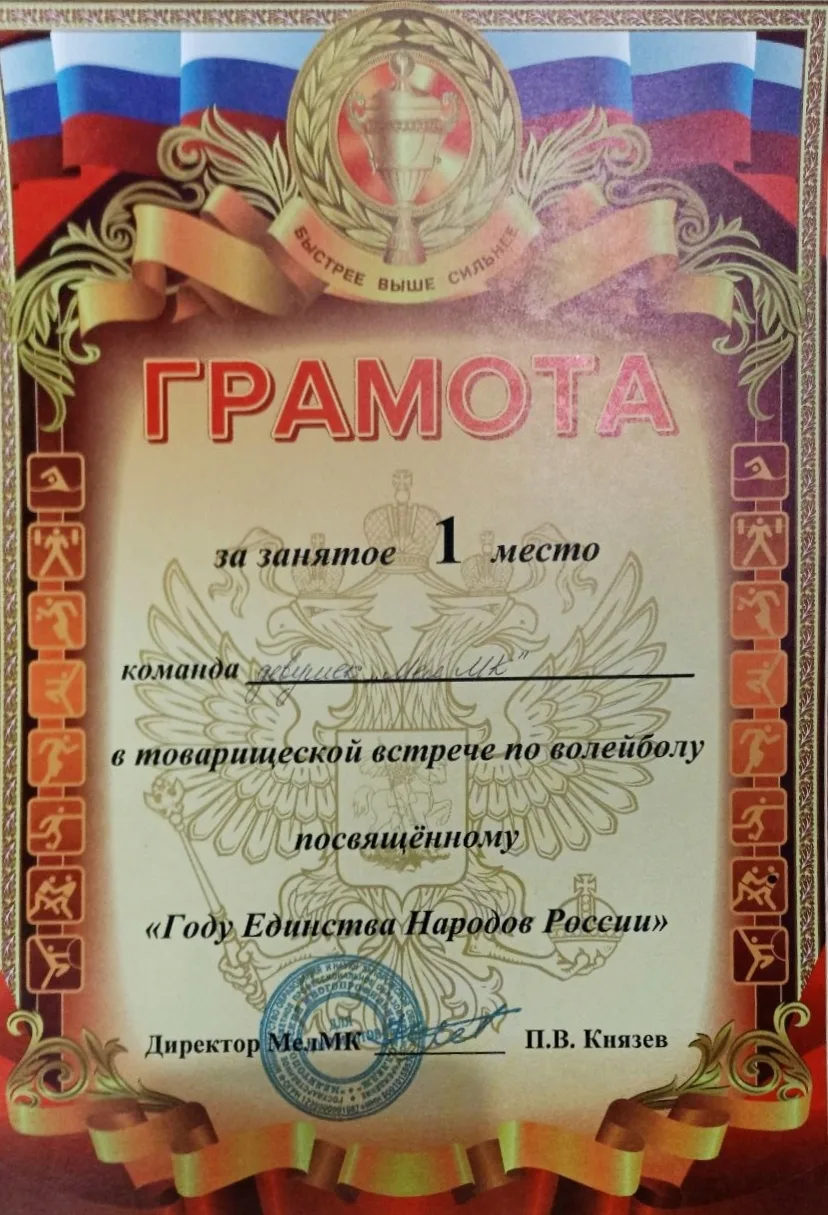 17 февраля на базе ГБПОУ «МелМК» прошла товарищеская встреча по волейболу, посвященная «Году Единства Народов России», между командами девушек «МелМК» и гостями из Акимовского района ГБУ ОО ЗО «Волчанской СОШ № 31»(возрастная категория 15-16 лет). В ходе напряжённого противостояния победу одержала команда «МелМК». За хорошую и увлекательную игру команды были награждены почётными грамотами и сладкими призами.