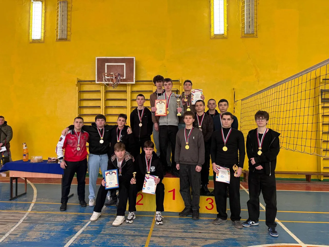 В результате упорной и напряженной борьбы 🥇чемпионом колледжа стала сборная команда гр. первого курса (ЮР, МХ, КС, ТГ), 🥈второе место заняла сборная второго курса гр. (РТ, ТМ, АГ) и 🥉третье место — команда группы ТО-233/11.