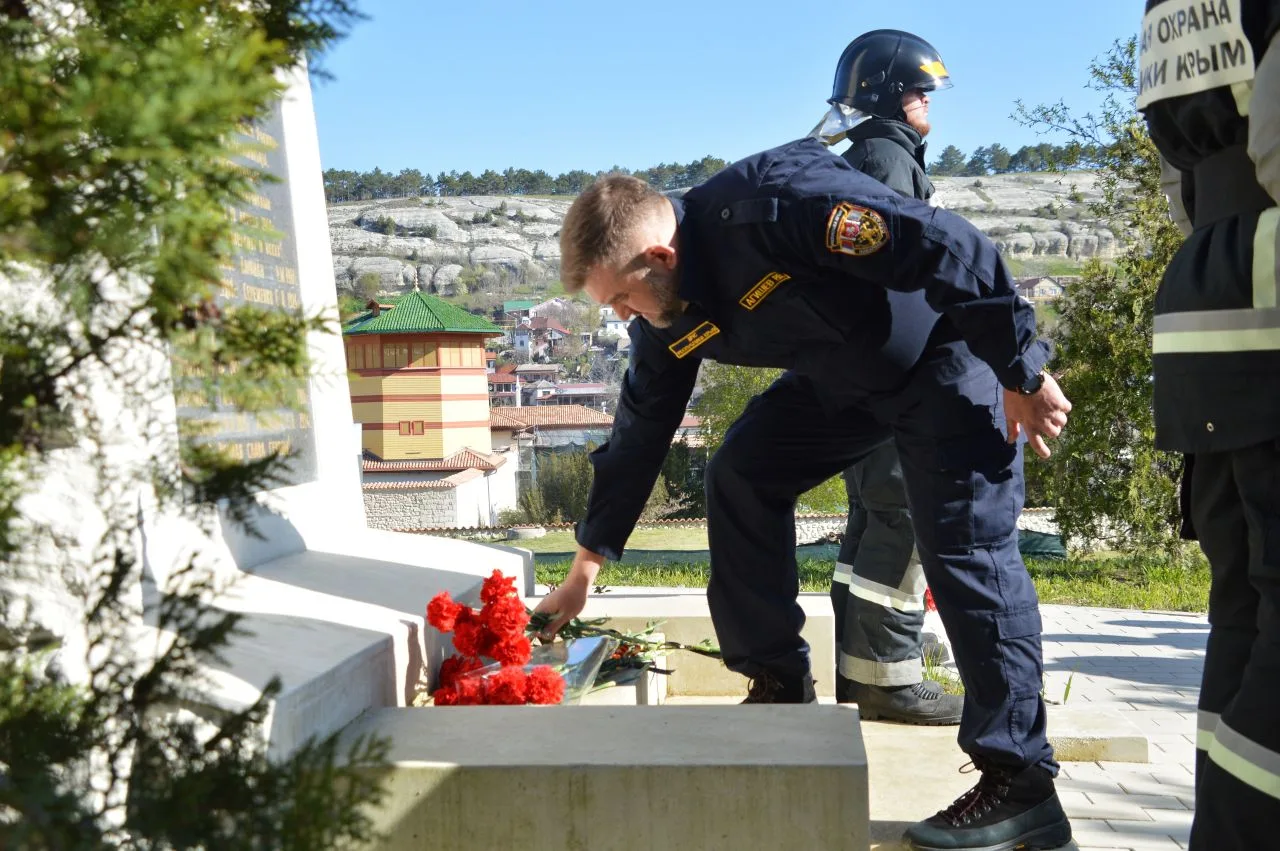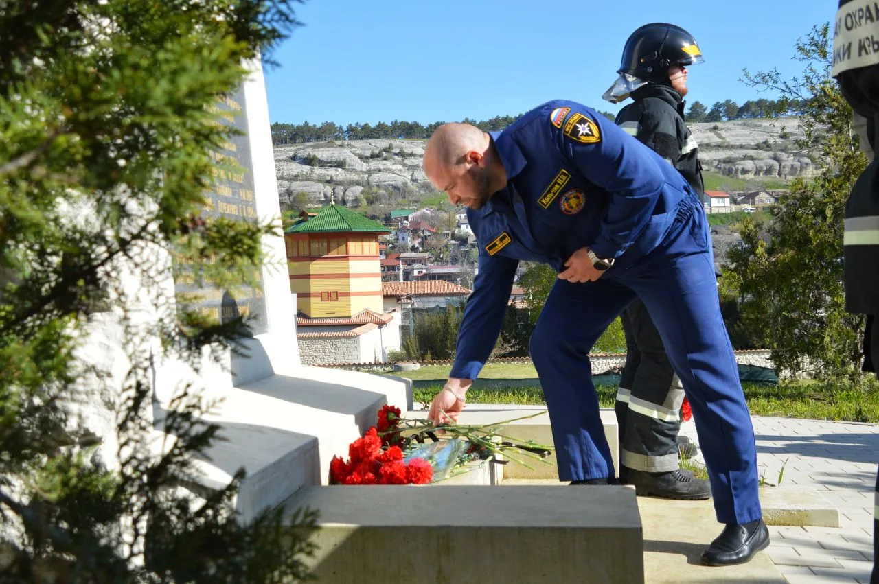 🔸В день образования советской пожарной охраны и в преддверии 81-й годовщины со дня Великой Победы мы вспоминаем подвиги пожарных Крыма. Сотрудники МЧС Республики Крым и ГКУ РК «Пожарная охрана Республики Крым» возложили цветы к Братской могиле подпольной антифашистской группы Бахчисарая.