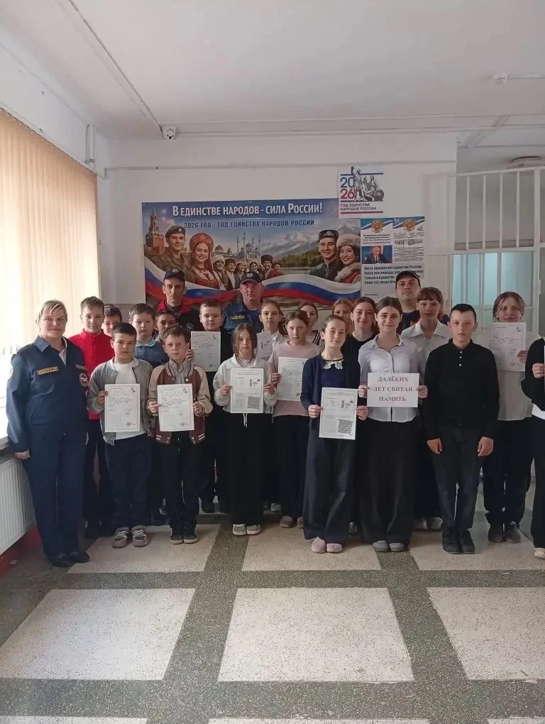 Ребята с большим интересом слушали истории о героях-земляках, чьими именами названы улицы их родных населенных пунктов. Спасатели подчеркнули, что сегодня, как и в годы Великой Отечественной войны, самоотверженность и готовность прийти на помощь являются главными качествами защитника своего Отечества