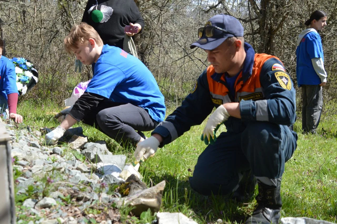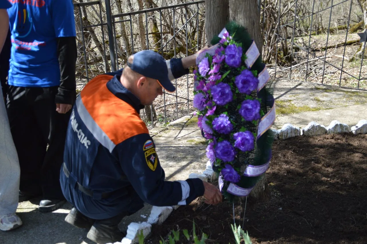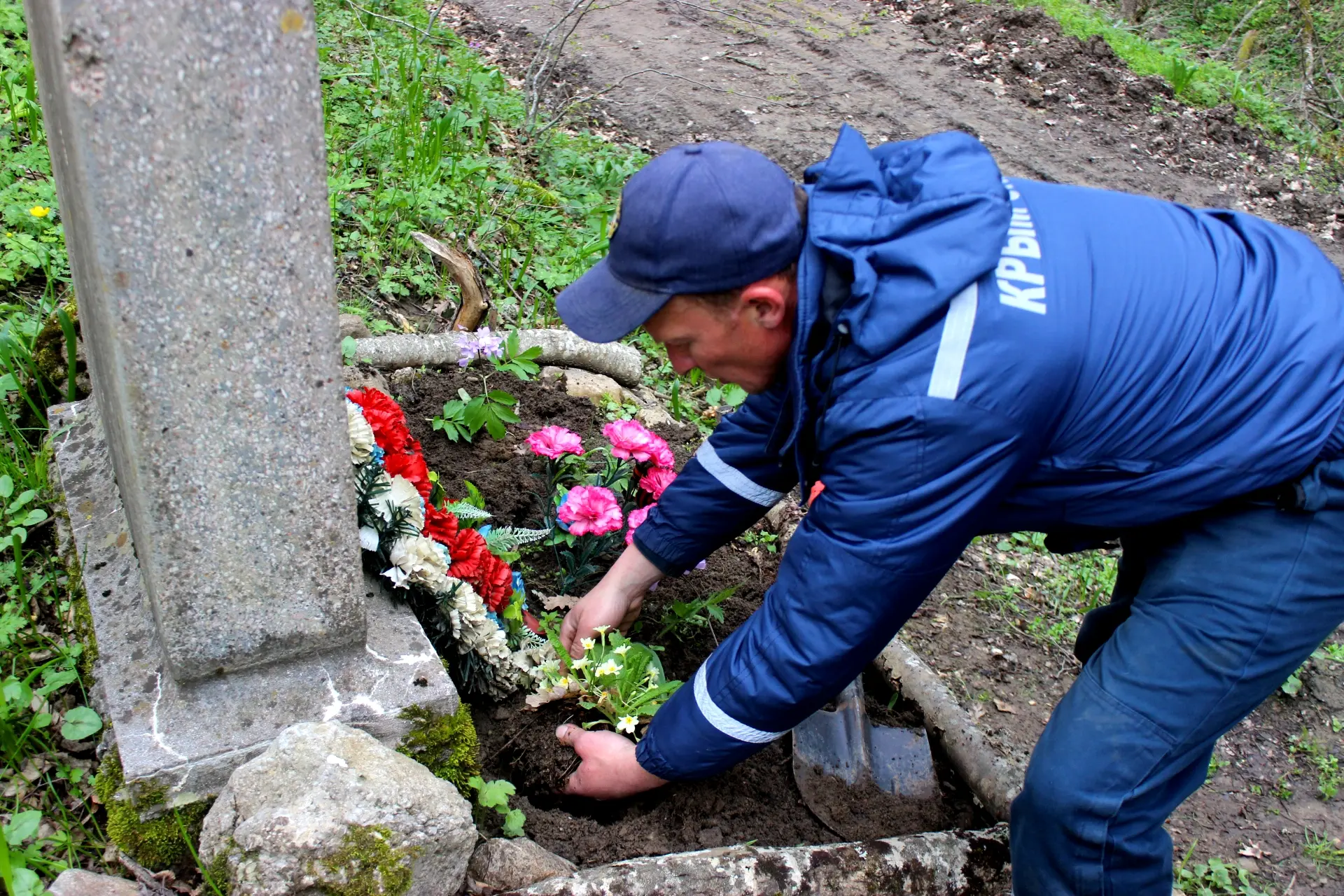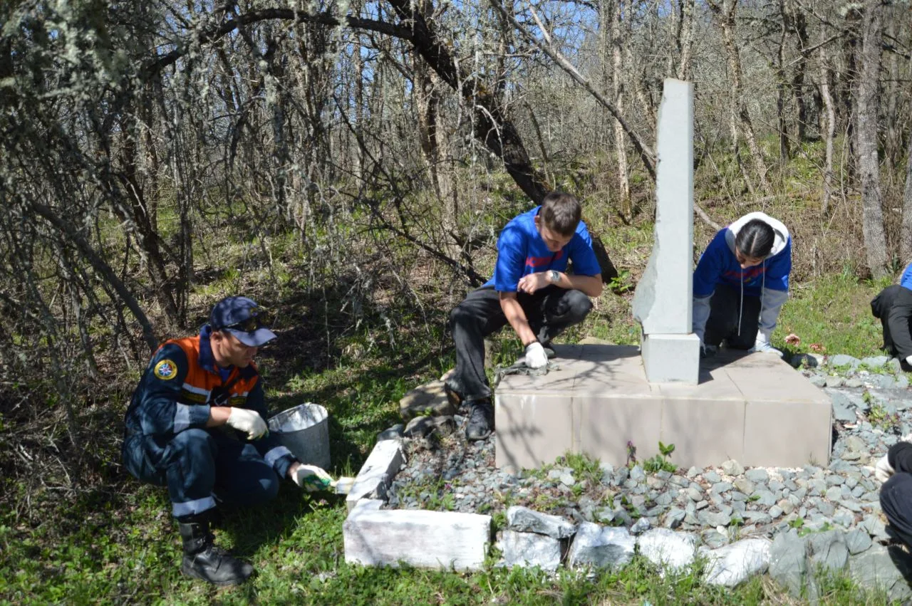 Спасатели вместе со школьниками очистили памятное место и прилегающую территорию от заросшей растительности, сухой листвы, покрасили оградку. Память о павших в бою героях почтили минутой молчания и возложили цветы.