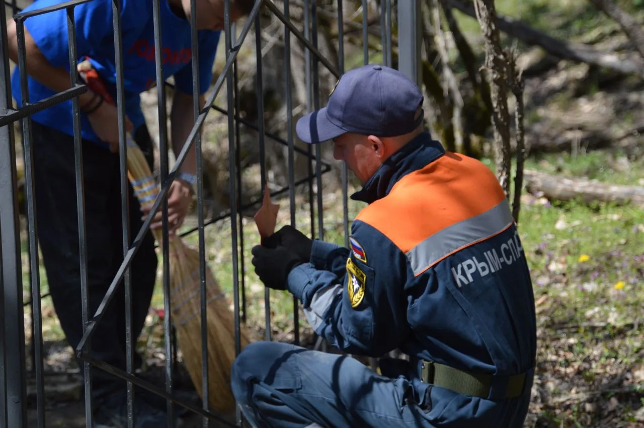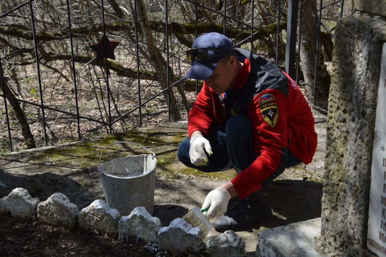 Сотрудники ГКУ РК "КРЫМ-СПАС" продолжают акцию по благоустройству памятных мест ВОВ
