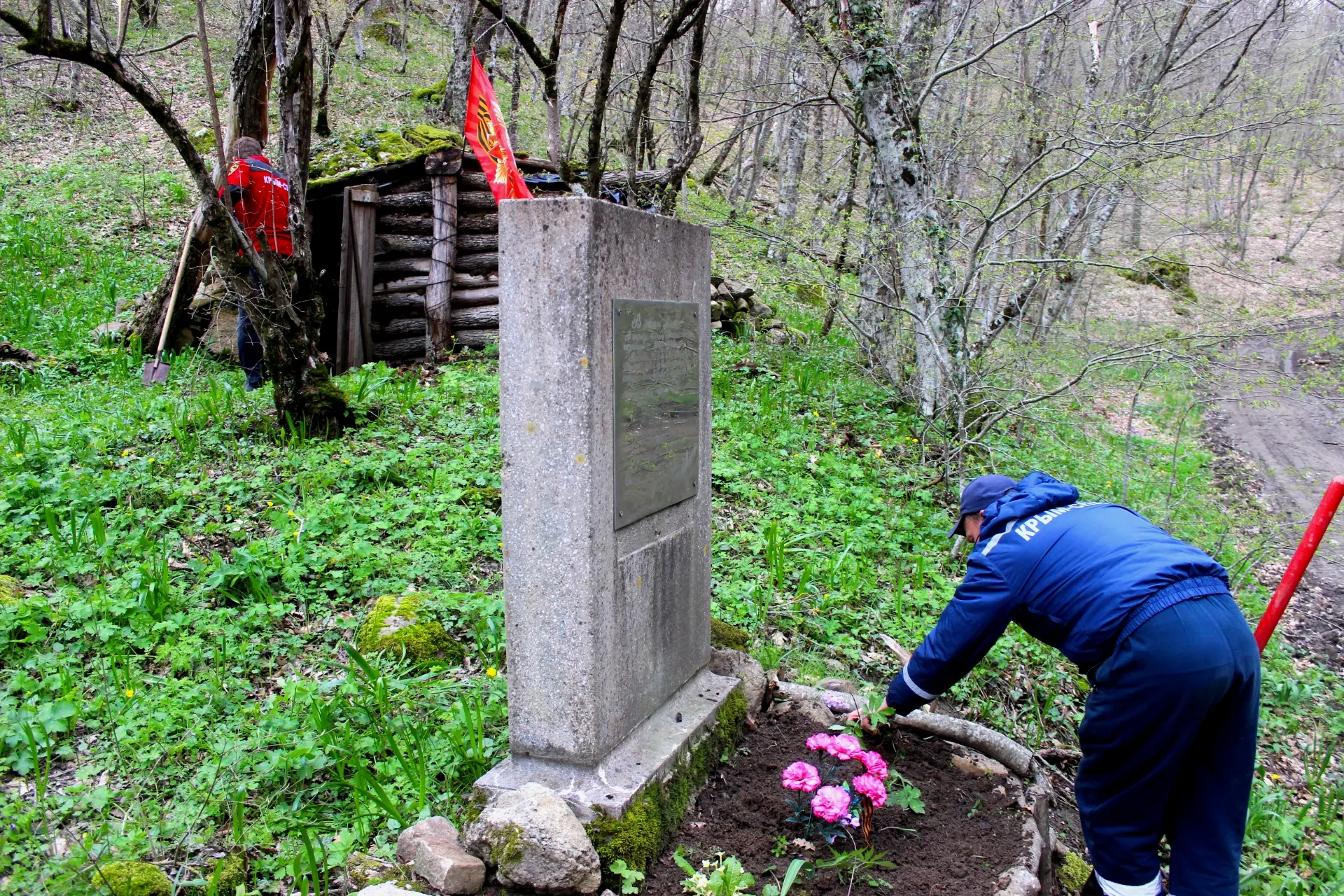 Кроме этого, спасатели с обучающимися провели работы по благоустройству памятника на могиле партизана 12 отряда 7 бригады Южного соединения Крыма Виждета Мустафаева. Могила его была обнаружена во время патрулирования горно-лесной местности в 2020 году в плачевном, разрушенном состоянии.