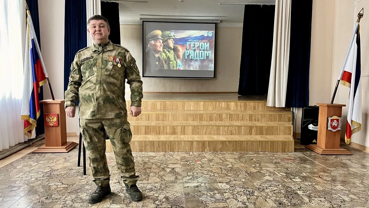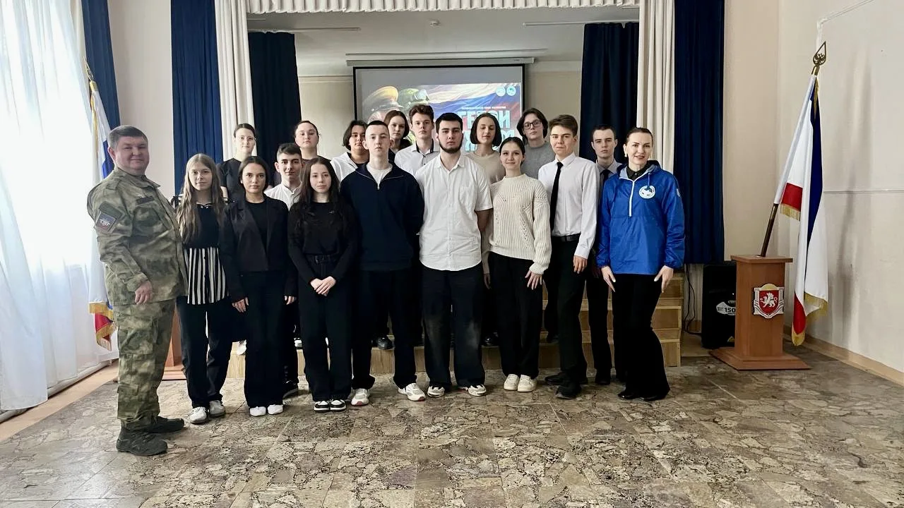 В преддверии этой значимой даты в МБОУ «СОШ №14 им. Б.И. Хохлова» г. Симферополя по инициативе «Волонтеров Победы» прошла встреча со свидетелем и активным участником февральского митинга у стен парламента Крыма и «Крымской весны», представителем Ассоциации ветеранов СВО Республики Крым Николаем Сергеевичем Тропыниным.