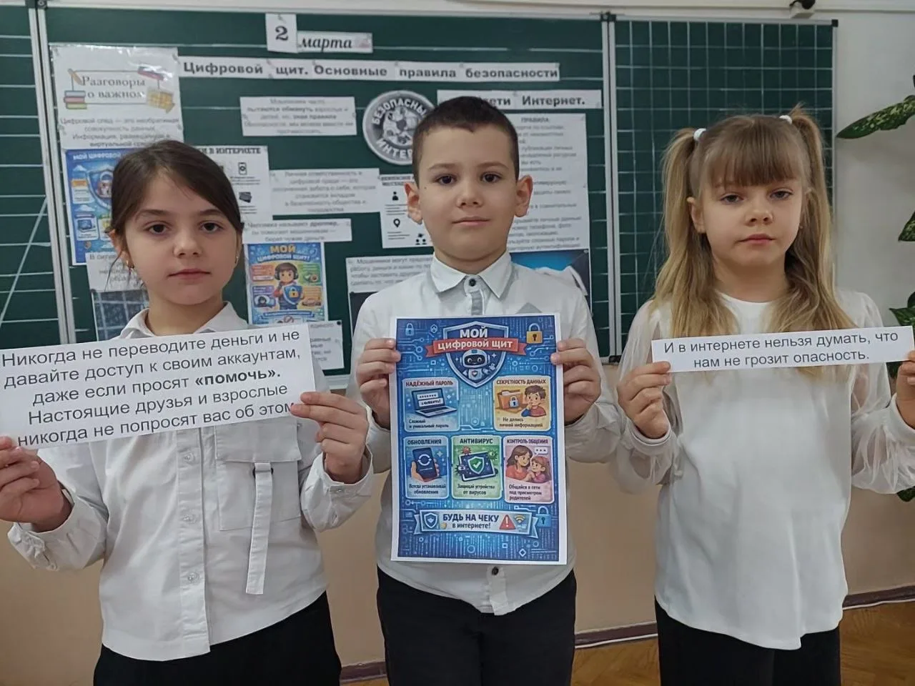 📅 2 марта новая учебная неделя в МБОУ «СОШ №14 им. Б. И. Хохлова» г. Симферополя началась с традиционной линейки и внеурочного занятия "Разговоры о важном", посвященного теме «Цифровой щит. Основные правила безопасности в сети Интернет»🛡️.