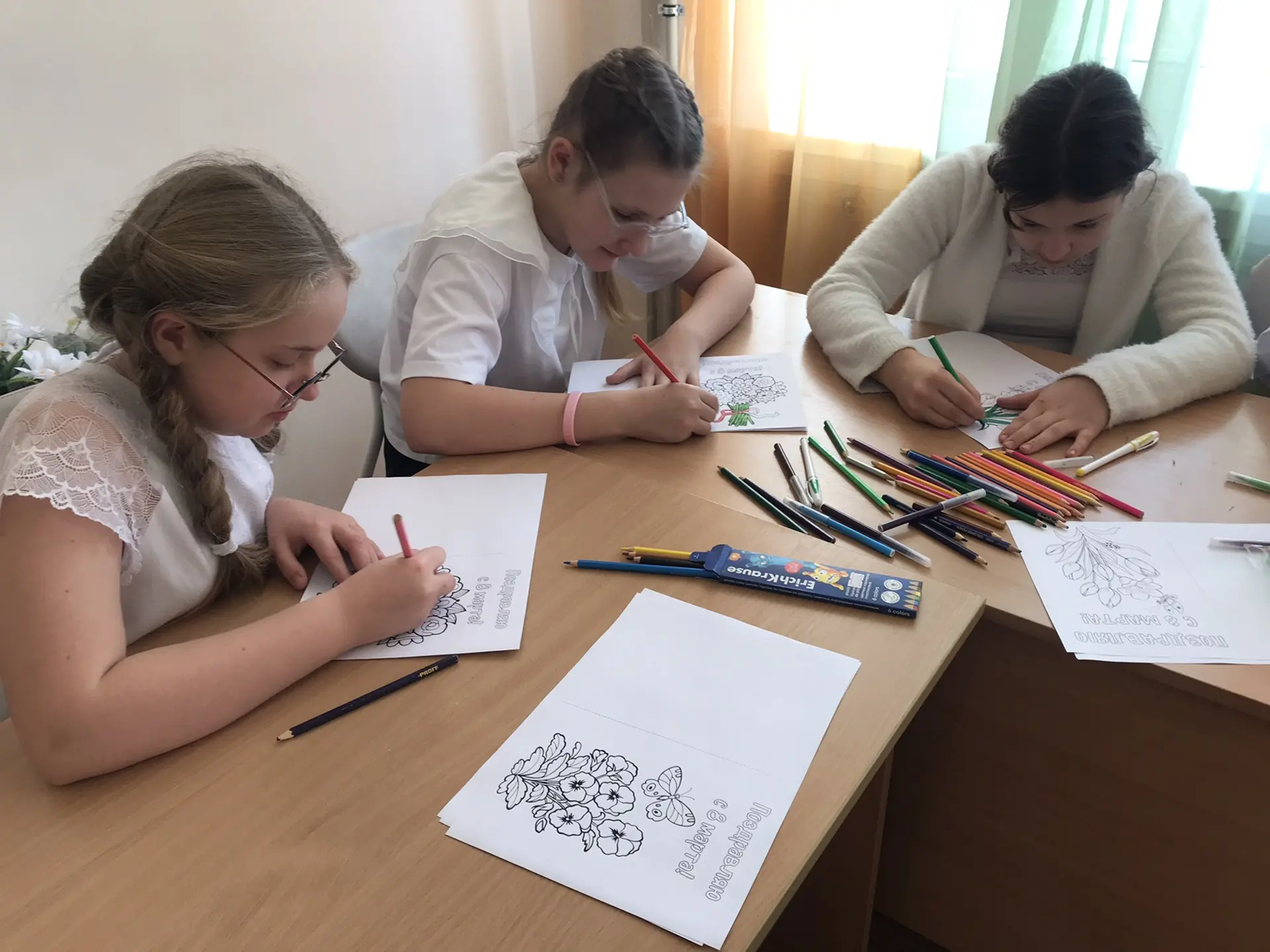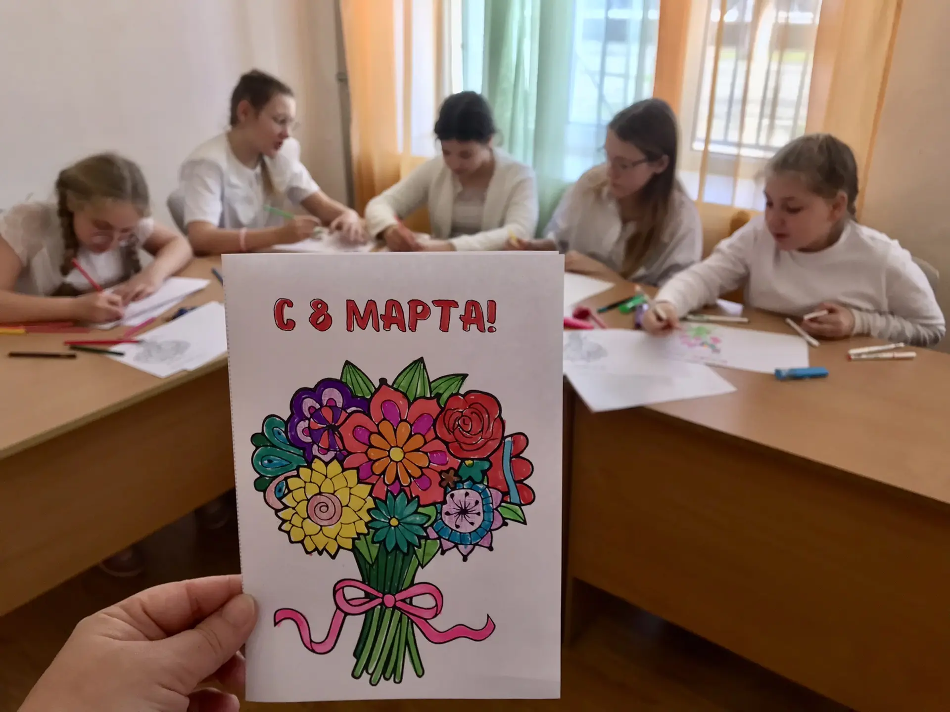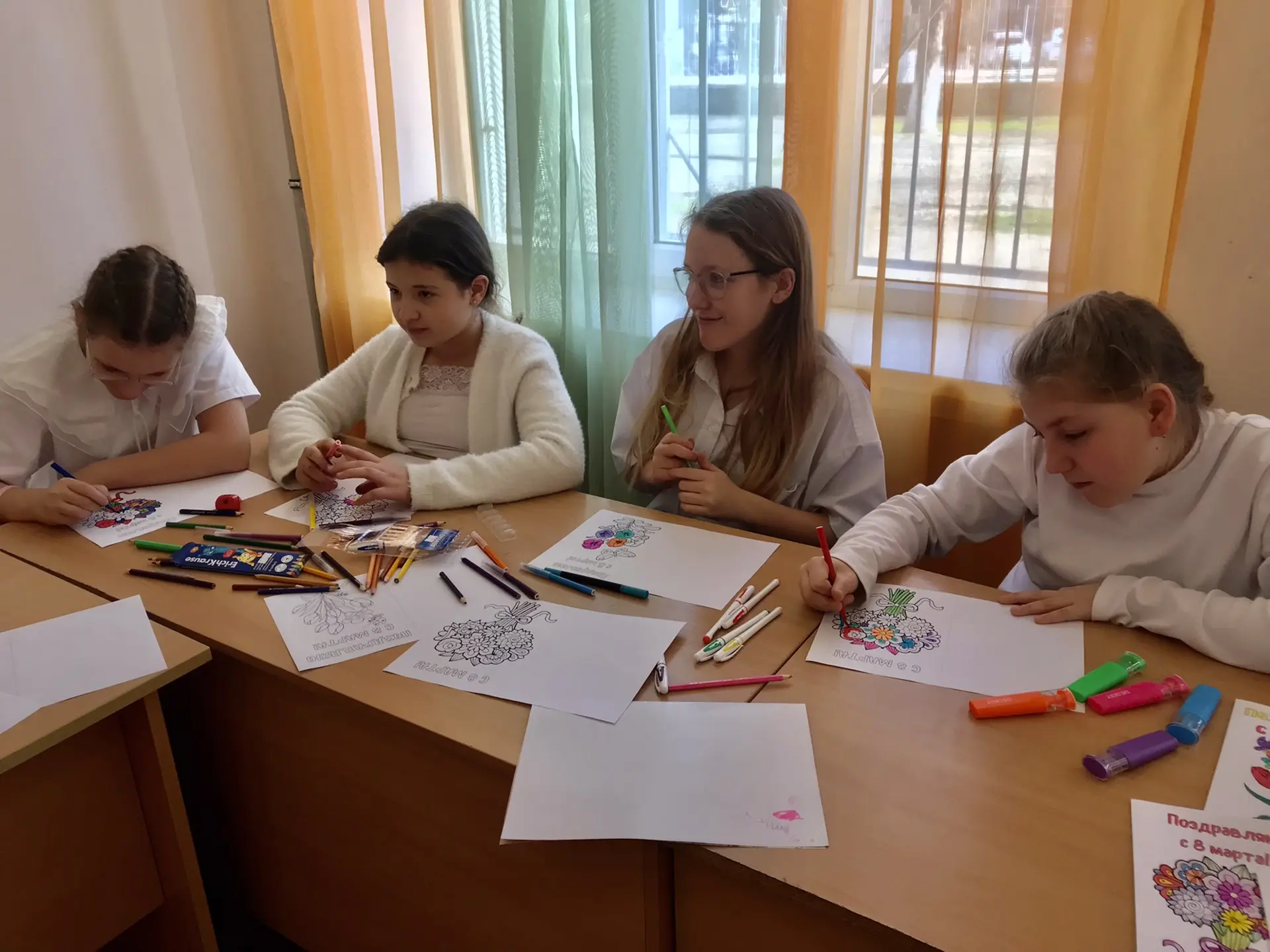 Вместе с советником директора по воспитанию Надеждой Мартыновой школьники своими руками создали яркие открытки с поздравлениями для пожилых людей и инвалидов, проживающих в домах-интернатах. Участники акции надеются, что их теплые слова и искренние пожелания согреют сердца получателей!