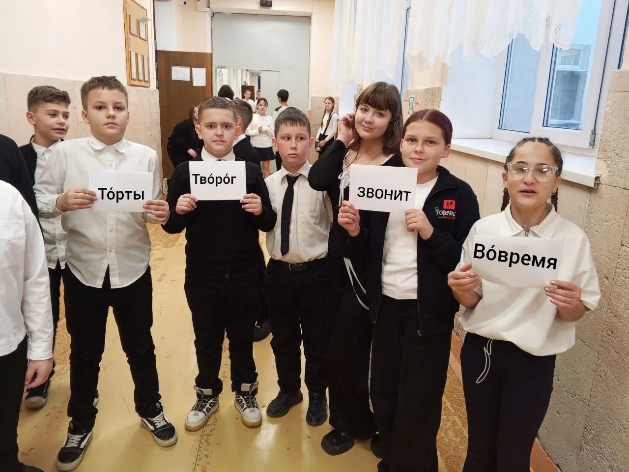 Акция включала в себя разнообразные активности, направленные на развитие языковой культуры и грамотности среди школьников. Одним из ярких моментов мероприятия стала викторина, в которой участники смогли проверить свои знания о правильном ударении в словах. Ученики с энтузиазмом отвечали на вопросы, обсуждали сложные случаи ударения и делились своими знаниями.