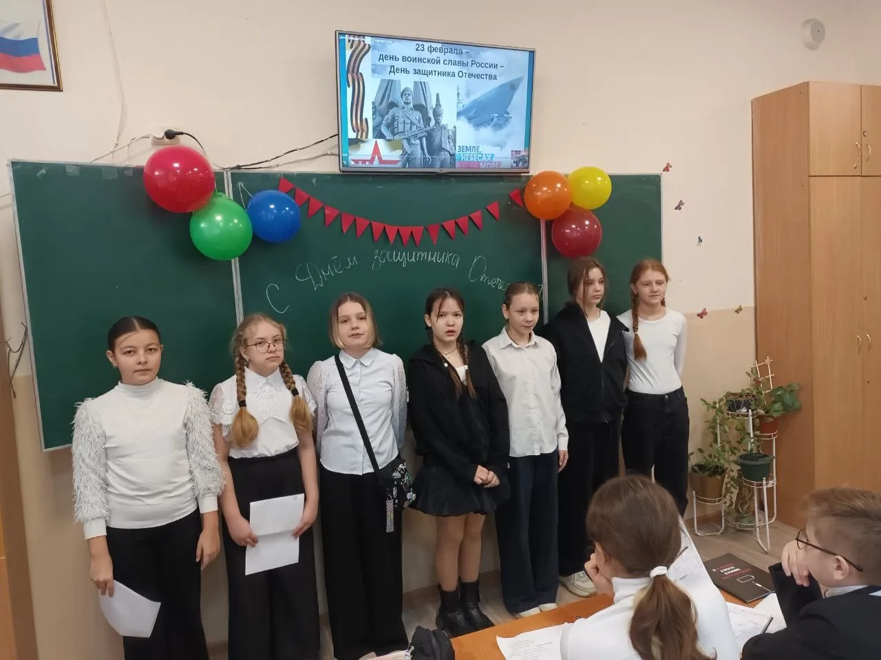 Ученики 4-Б класса МБОУ «СОШ N14 им. Б. И. Хохлова» г. Симферополя поздравляют всех, кто стоит на страже безопасности нашей страны с Днём защитника Отечества!