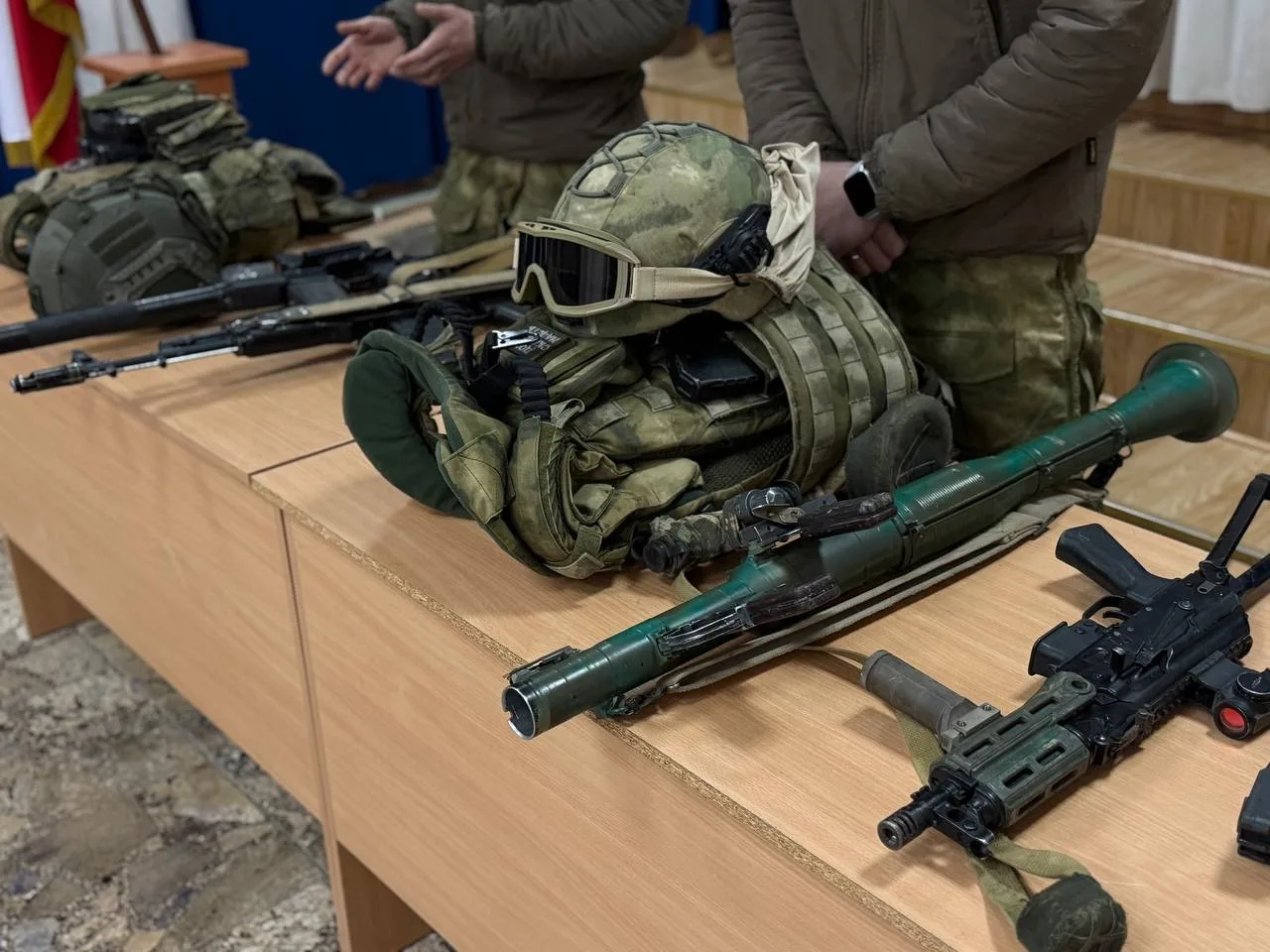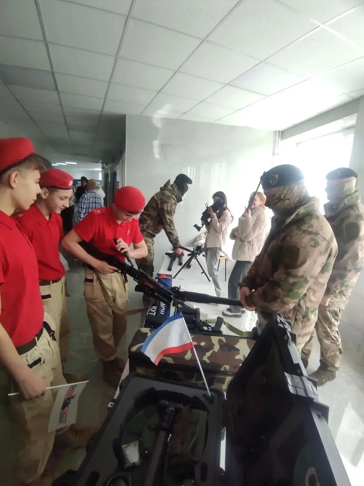 Кроме того, гости продемонстрировали элементы обмундирования и снаряжения, находящихся в арсенале современных вооруженных сил, провели мастер класс по их использованию.