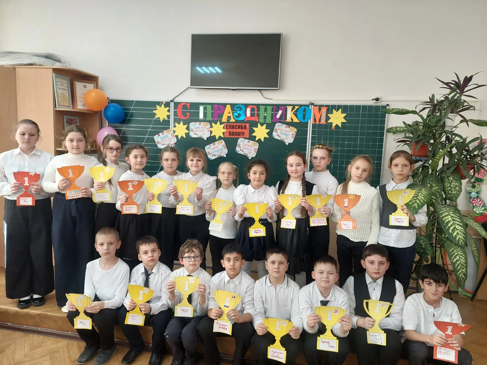 Ученики 4-В класса МБОУ «СОШ N14 им. Б. И. Хохлова» г. Симферополя твёрдо знают, что героя лучше папы нет, и от всей души поздравляют своих отцов с Днём защитника Отечества!