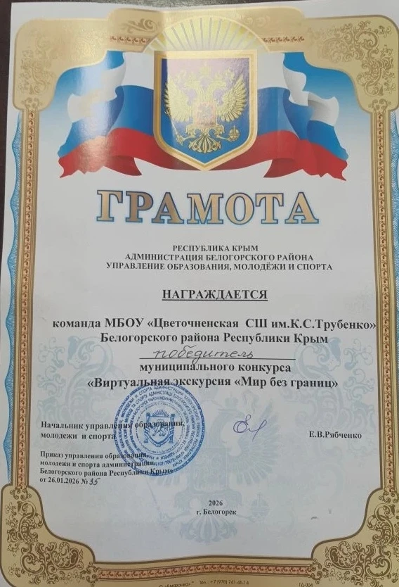 У нас очередная победа!!! Муниципальный конкурс "Виртуальная экскурсия "Мир без границ"! Поздравляем Эсму Хасановну и учеников 5-Б класса: Ильченко Александра и Муратова Ибраима!